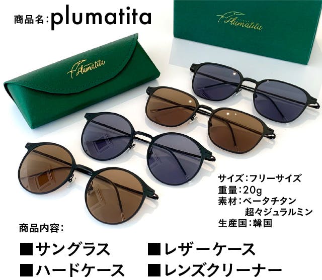 【plumatita(プールマティタ)】はβチタンフレームを採用したサングラス。超軽量でフィット感抜群。韓国の眼鏡産業の中心地・大邱(テグ)のメガネ工房が高い技術で作り上げた逸品です。