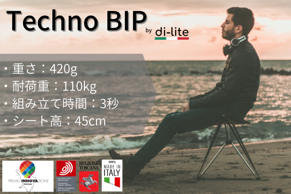 イタリアのdi-lite社から、軽量かつ優れた耐久性を持ち合わせ、折り畳み傘のようにコンパクトに折りたためる、ポータブルチェア「Techno BIP(テクノビップ)」の登場です。