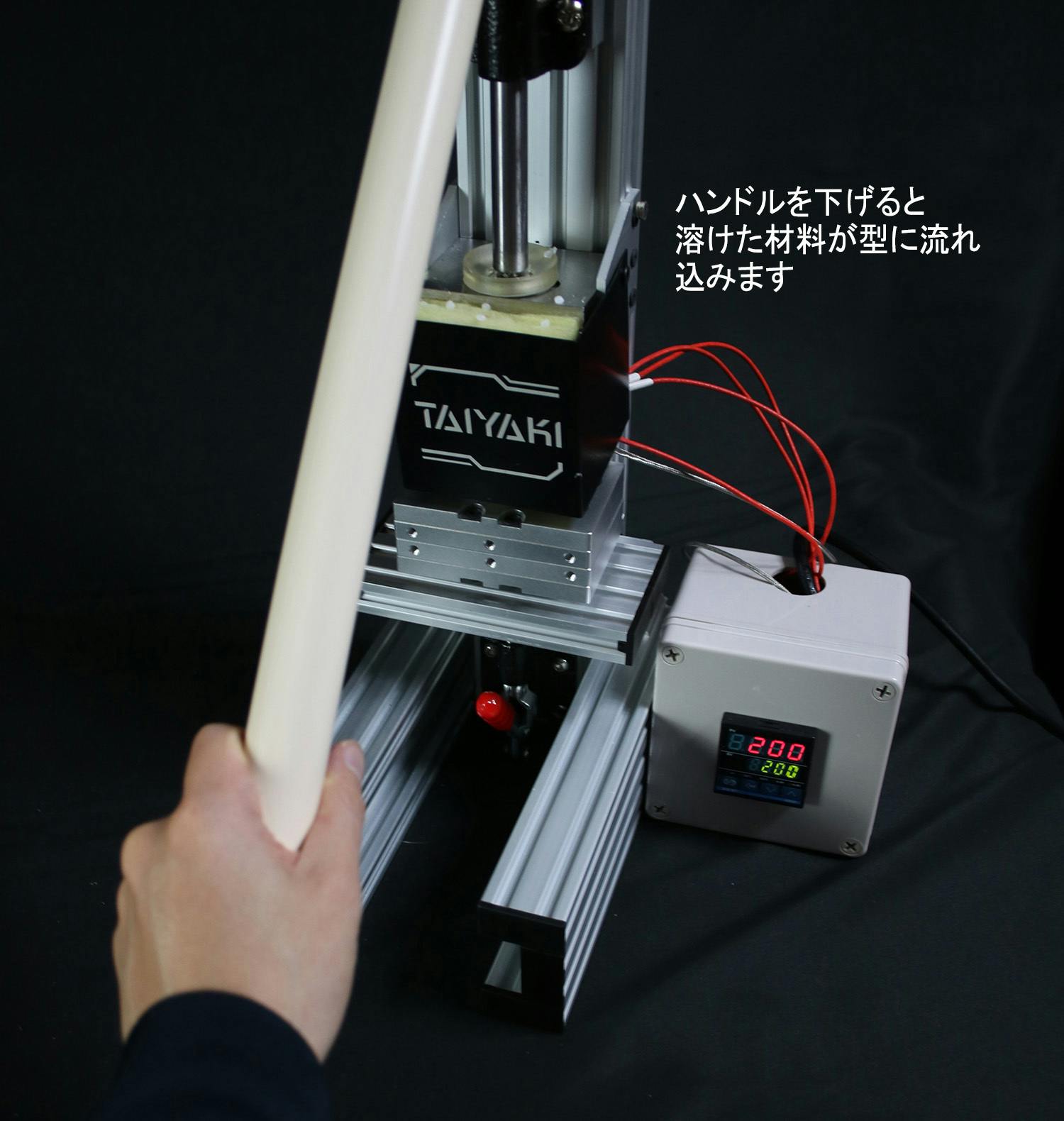 「TAIYAKI」は卓上の縦型射出成形機組立キットです。