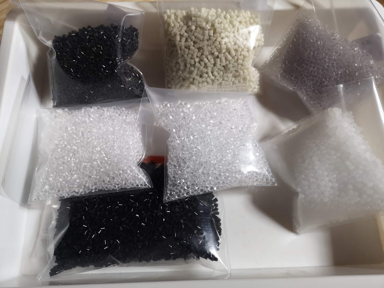 成形用のペレットについて。リターン品には使いやすいPPペレットを500g同梱していますが、追加分や他の色、材料などをAvalonTech株式会社様のストアで取り扱っていただける予定です。フレックス系のゴム素材やABS、シリンダ清掃用のものなど色々ご用意する予定です。