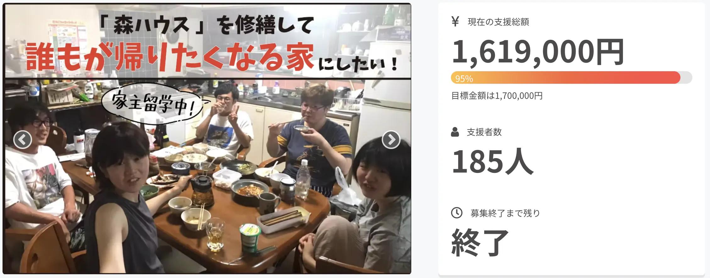 そしてリターンとして開催した食事会で、お礼を伝える立場のはずなのに、逆に支援者の方から「美味しかった、ありがとう」と感謝の言葉を頂けた瞬間。