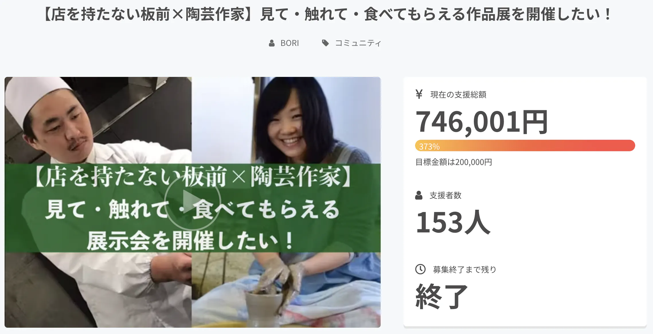 2016年、自身で初となるCAMPFIREプロジェクトに挑戦。プロジェクトは開始3時間で目標金額を達成し、終了時には現金支援を含め、目標達成率約400%に至る。