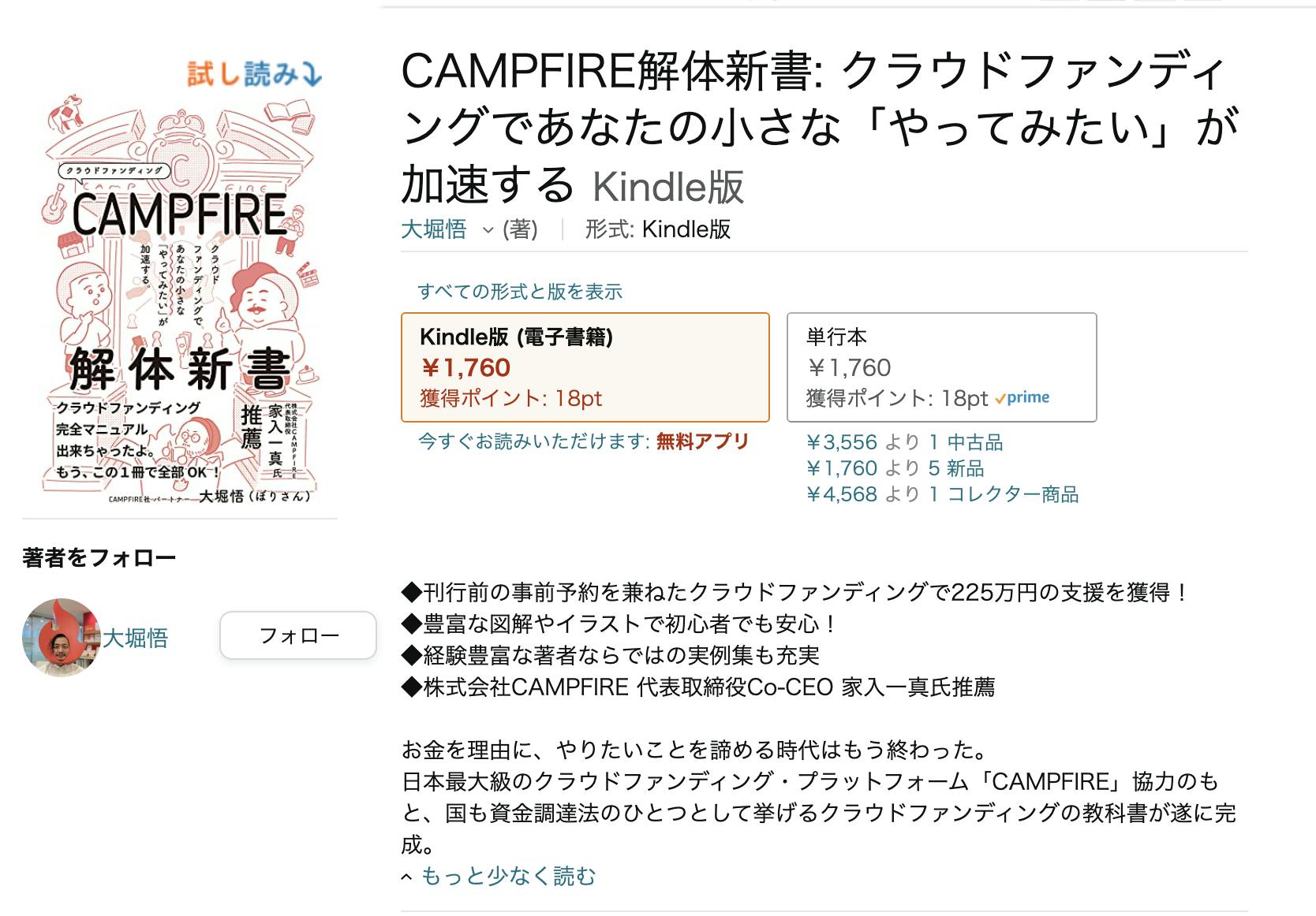 2022/07/21 14:00CAMPFIRE解体新書著者のぼりです!ようやく準備が整いまして!!!Amazonにて単行本とKindle版(電子書籍)両方の販売をスタートしました〜〜〜!CAMPFIRE解体新書: クラウドファンディングであなたの小さな「やってみたい」が加速する詳細はこちら: https://amzn.asia/d/3UbCeQC自分の書いた本がAmazonで買えるってなんかすごく変な感じです!!素直に!!うれしい!!!コメントのお願いそして既にCAMPFIRE解体新書を手に取り読んでくださった支援者のみなさまにお願いがあります!!!よろしければぜひ…!商品ページの下の方にある「カスタマーレビューを書く」よりコメントを頂けないでしょうか!!もしレビューを書いてくださったらぼくに教えてくださったりしたらとても嬉しいです!!!いよいよ書店流通と通販サイトへの掲載も完了し、「届けるための段取り」は完了しました!!!またこれからも1人でも多くの方にこの本が届くよう、全力でがんばります! もっと見る
