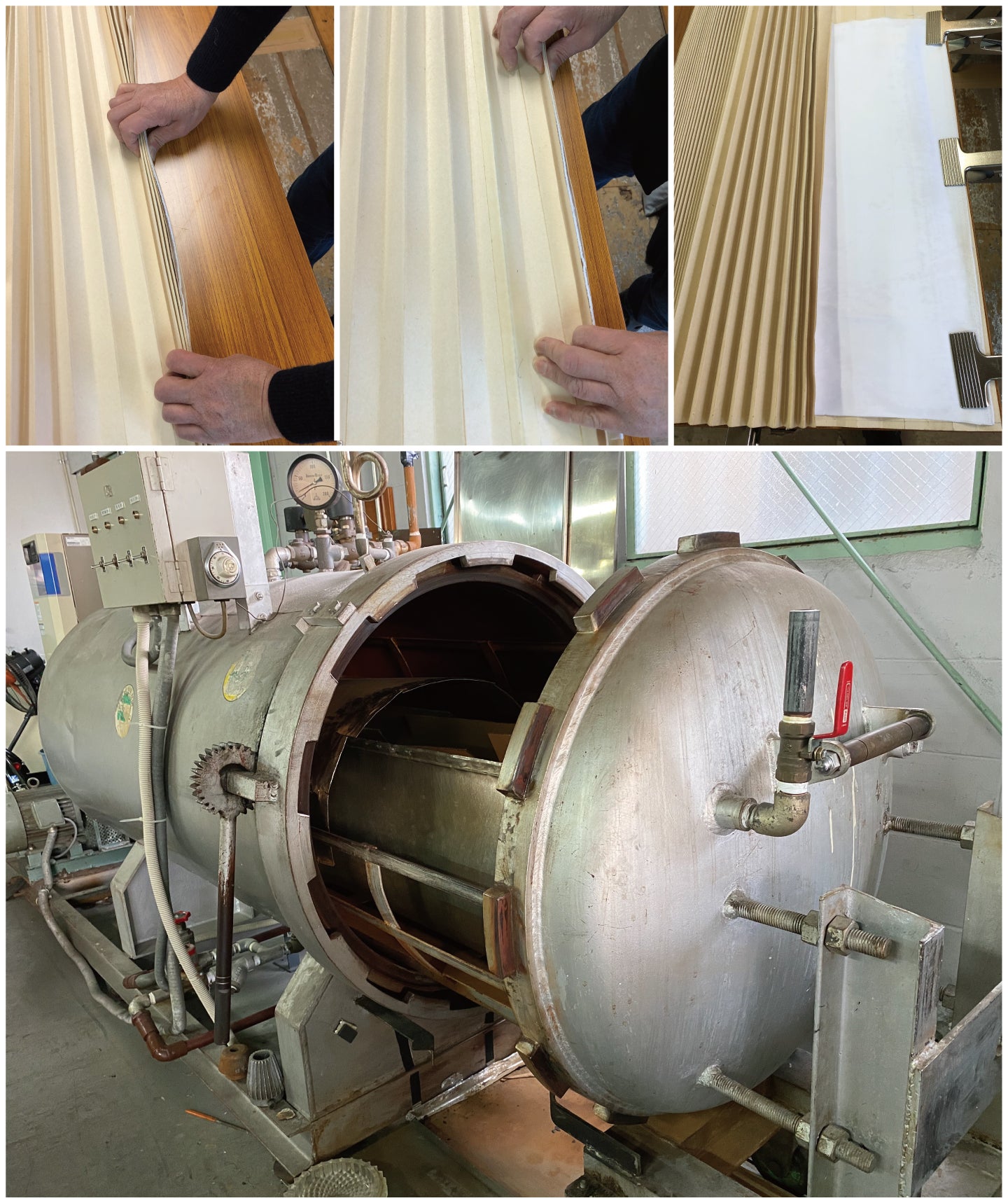 ご覧いただき有難うございます。プリーツボレロについての説明をさせて頂きます。今回、出品しておりますプリーツボレロ「PULEBO」は職人が紙でつくった型紙に生地を挟んで1枚づつ折り目通りに折り畳みます。折り畳んだ状態のまま、真空窯に入れ、高温を掛けることにより生地の折り目を安定させています。プリーツボレロの折り目は、この技術を使っています。収納する時にはシワになりにくく、素早く畳むことが出来る商品です。また、バックにもスッキリと収納できるので室内や屋外での体温調節などに大変便利な商品となっています。詳細の説明はHPでご覧いただけます。https://f-s-g.jp/pulebo