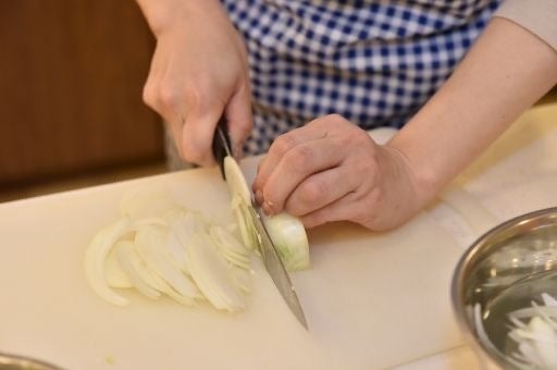切れ味の良い包丁を使うと玉ねぎの細胞を壊さずくれるので
