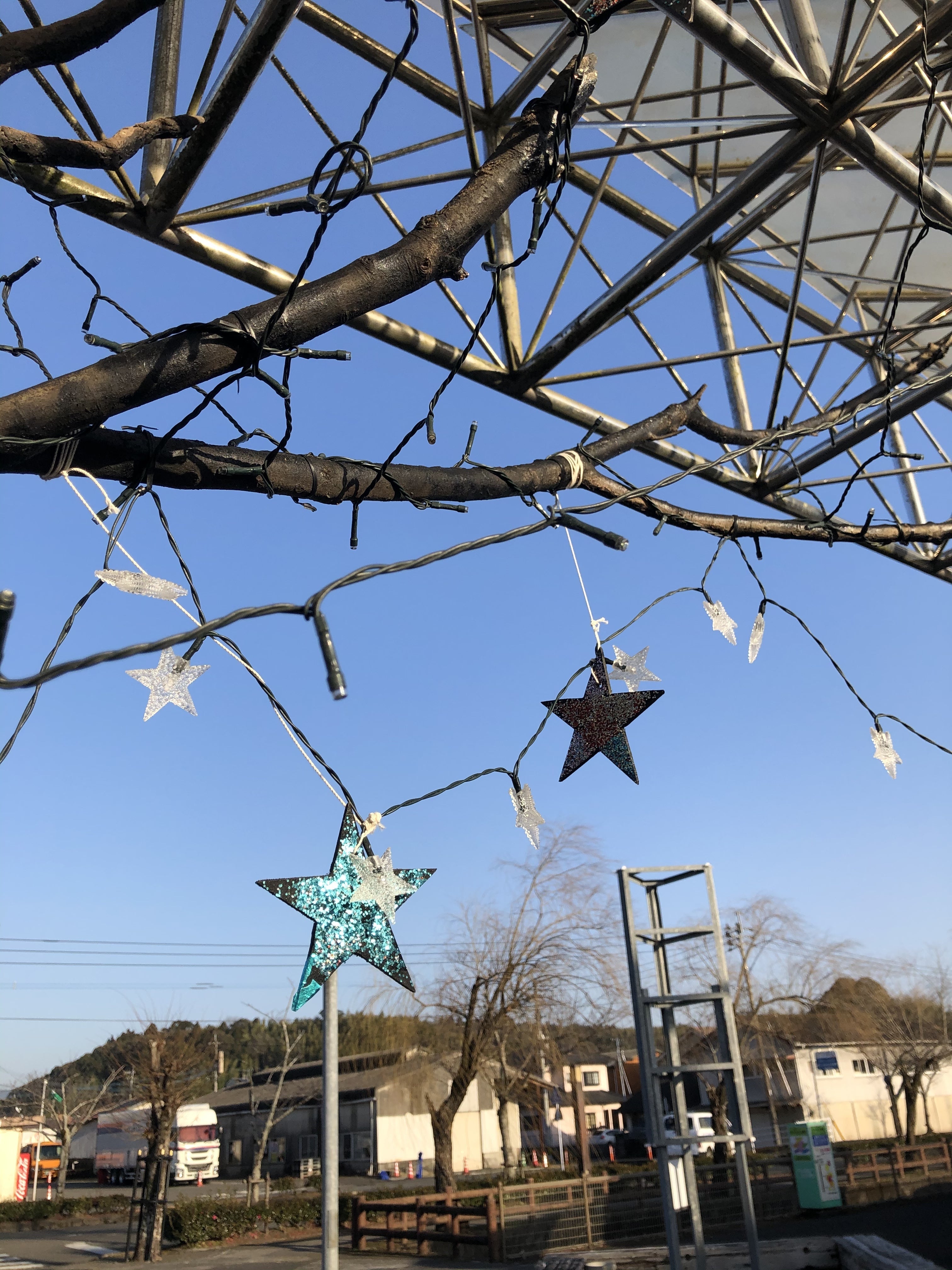 またふれあいセンター周辺の木や休憩所に、ソーラーLEDイルミネーションを使ったイルミネーションをボランティアの皆さんの協力で点すことができました。芸術系地域おこし協力隊の金山さんに協力をもらい、ワークショップを開催。子どもたちとヒカリの木を作り、昼間も楽しめるスポットにしました。ソーラーのため、天候によっては電気が弱かった日もありますが、皆さんの協力で優しいヒカリを点すことができました✨