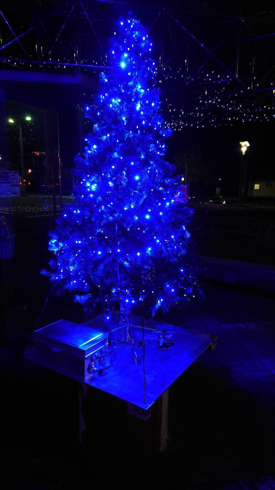 昨年はイルミネーションだけを伊佐の皆さんから集めた募金で行うことができました。今年は9年前のように、ふれあいセンター屋上から大きなツリーを復活させたくて、電気屋さんに依頼。