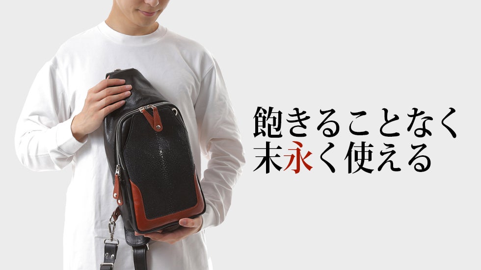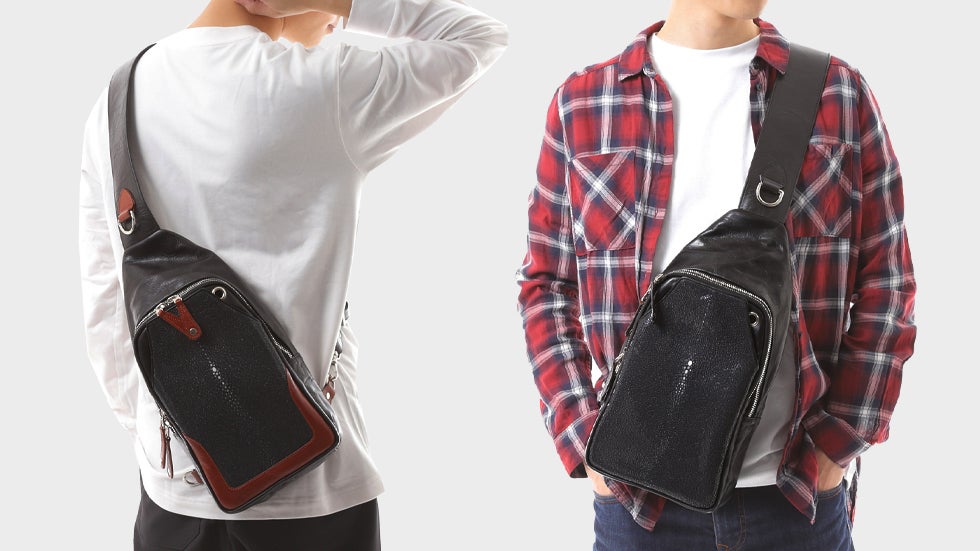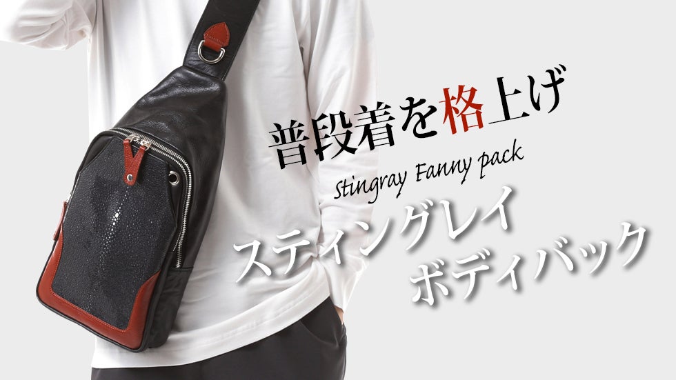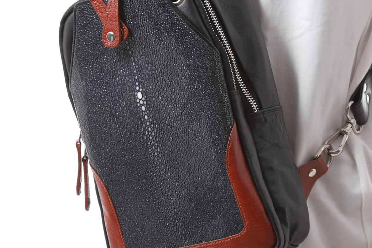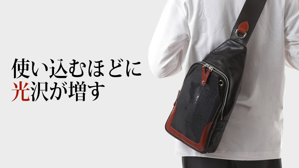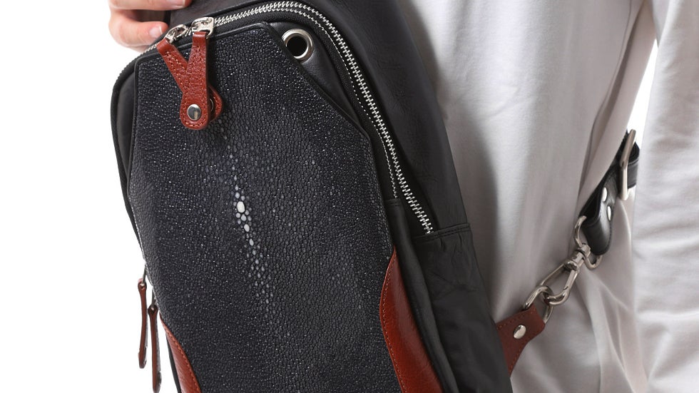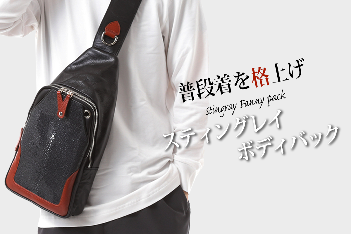 カジュアルテイストに似合う形状と、光沢のある美しい見た目とが絶妙なバランスのスティングレイボディバック