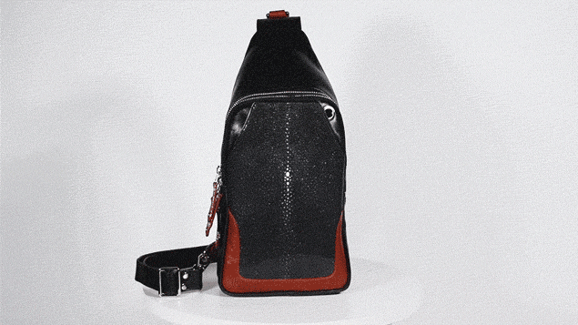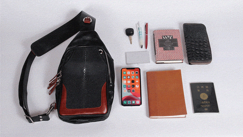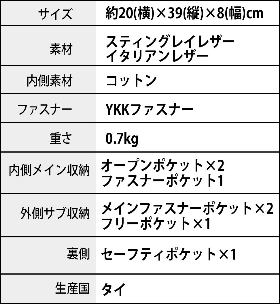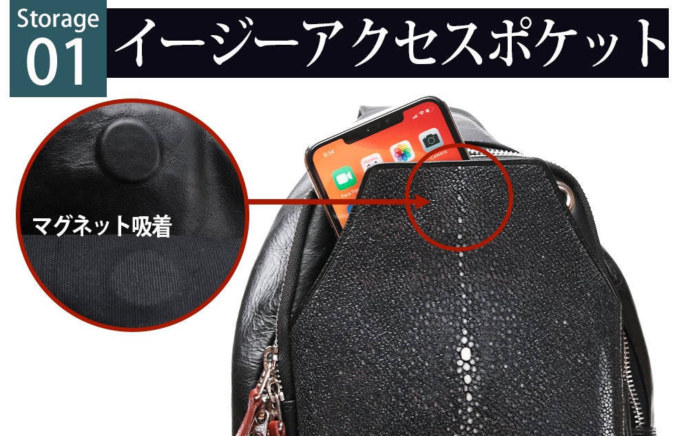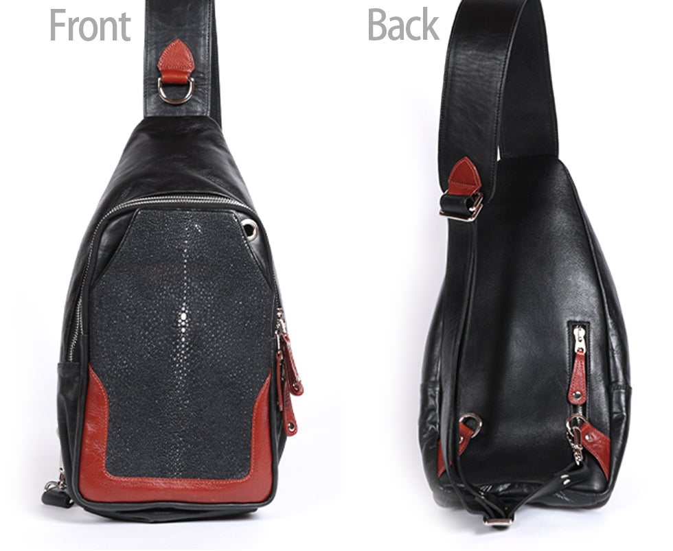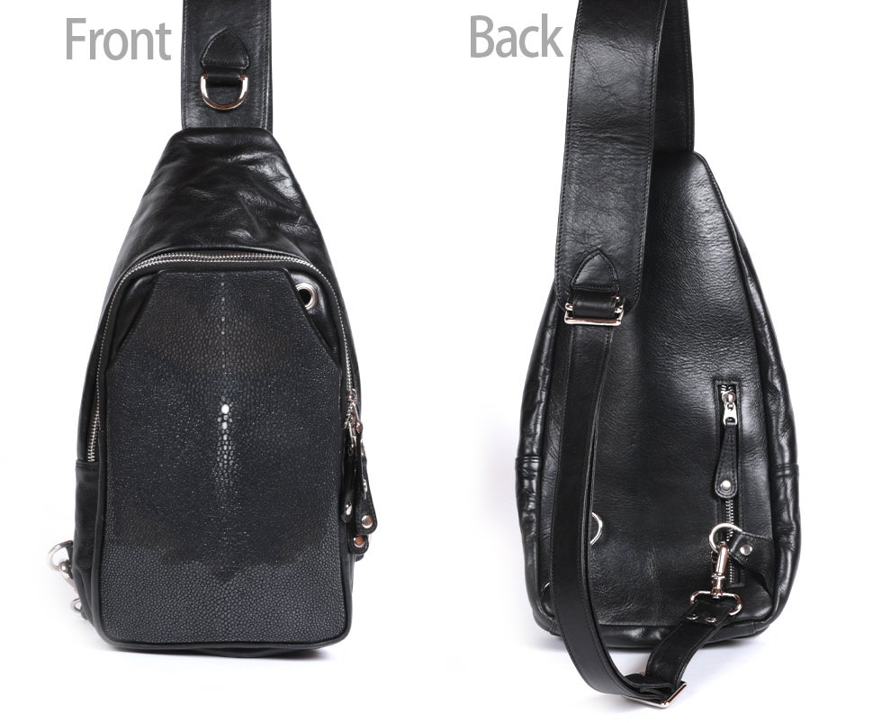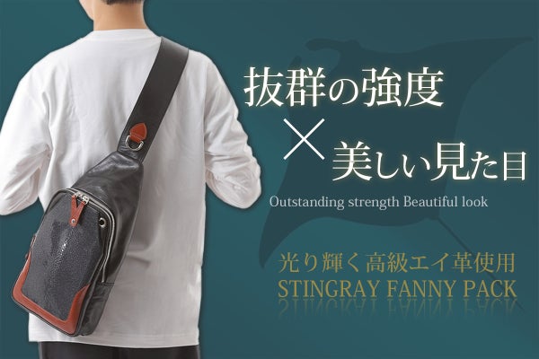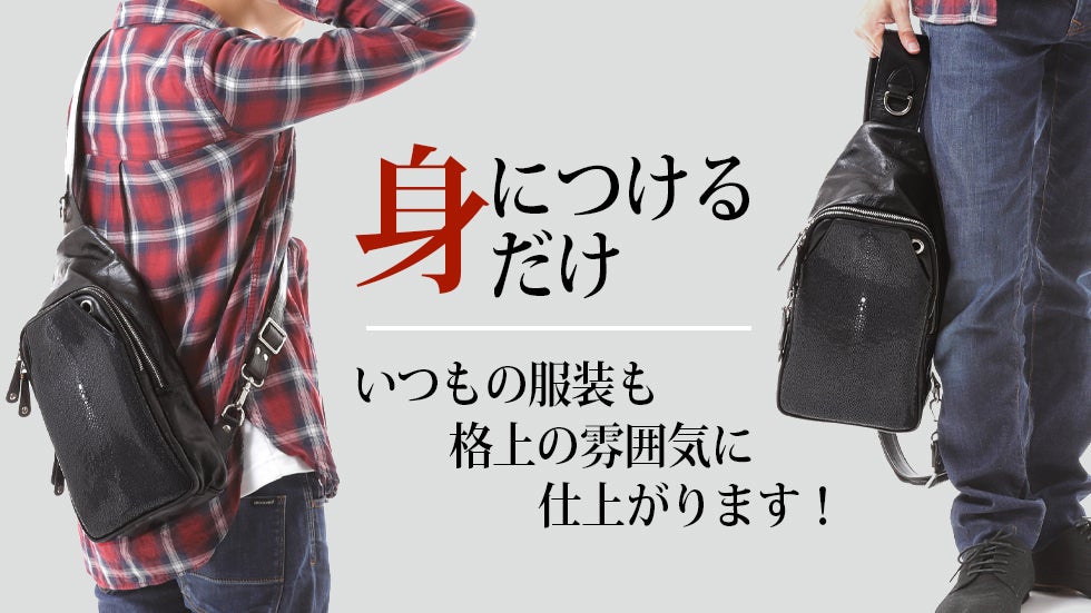カジュアルテイストに似合う形状と、光沢のある美しい見た目とが絶妙なバランスのスティングレイボディバック