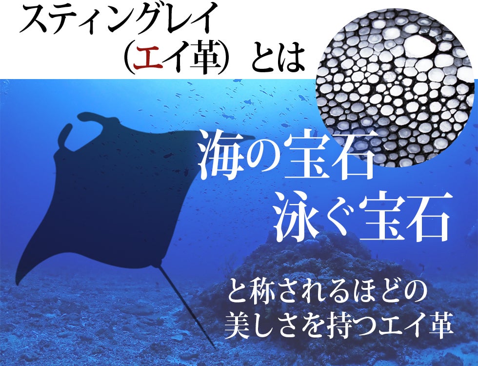「海の宝石」及び「泳ぐ宝石」と称されるほどの美しさを持つエイ革。