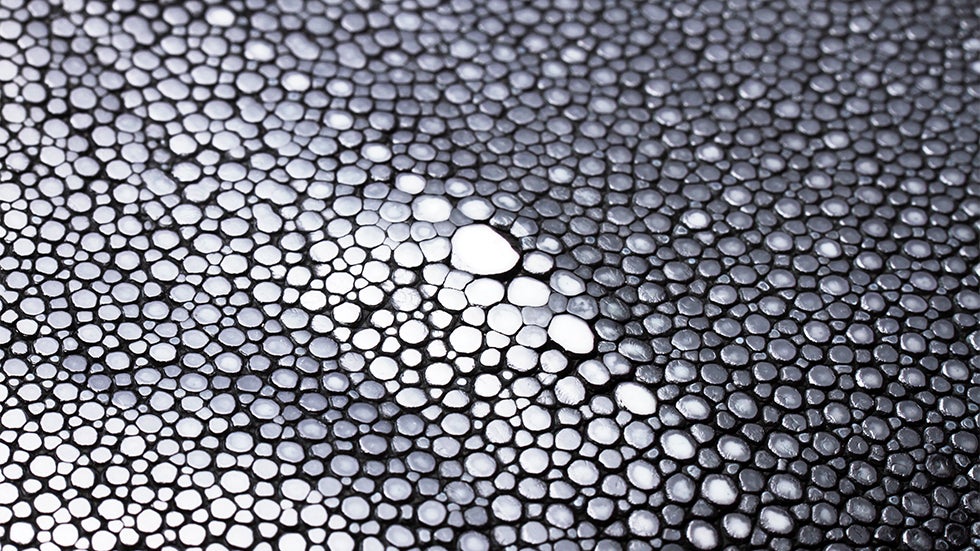 英語ではスティングレイ、フランス語ではガルーシャと呼ばれるエイ革。