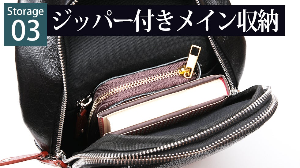 見た目よりたくさん入る、大容量のジッパー付きメイン収納