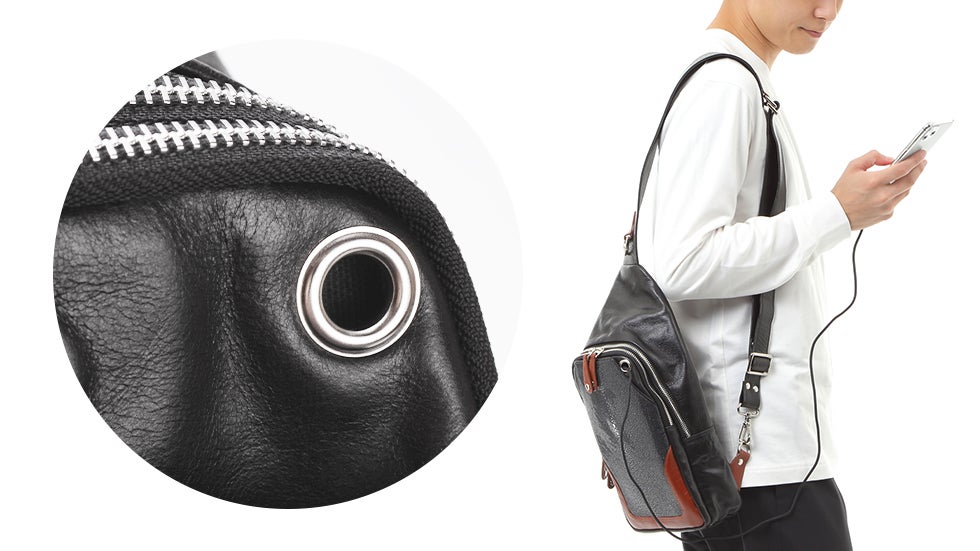 ケーブルを通す穴がついているので、外出先でスマホ充電も可能です。移動中に音楽や動画を楽しみたいときにはイヤホン穴として活用することもできます。