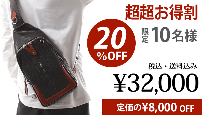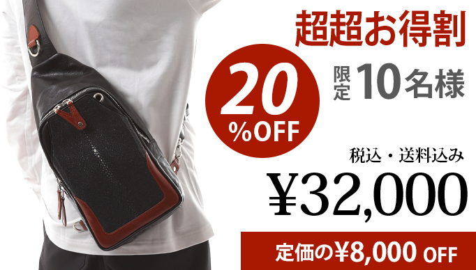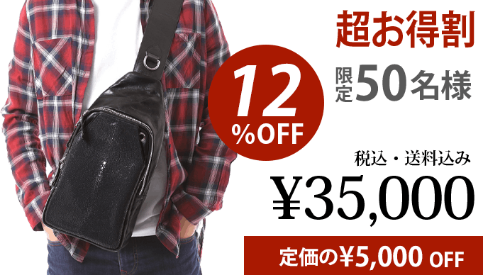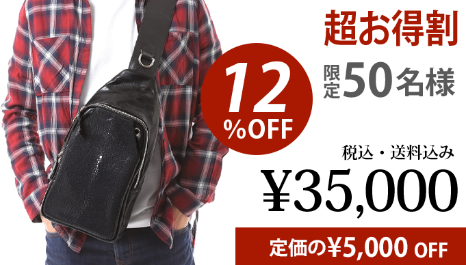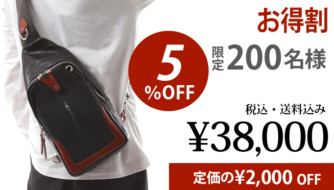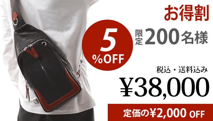 このスティングレイボディバッグは、生産業者が直接革を加工する事で中間マージンを取らずに提供することができるため、優れた品質のバッグをリーズナブルな価格でご購入いただけます。