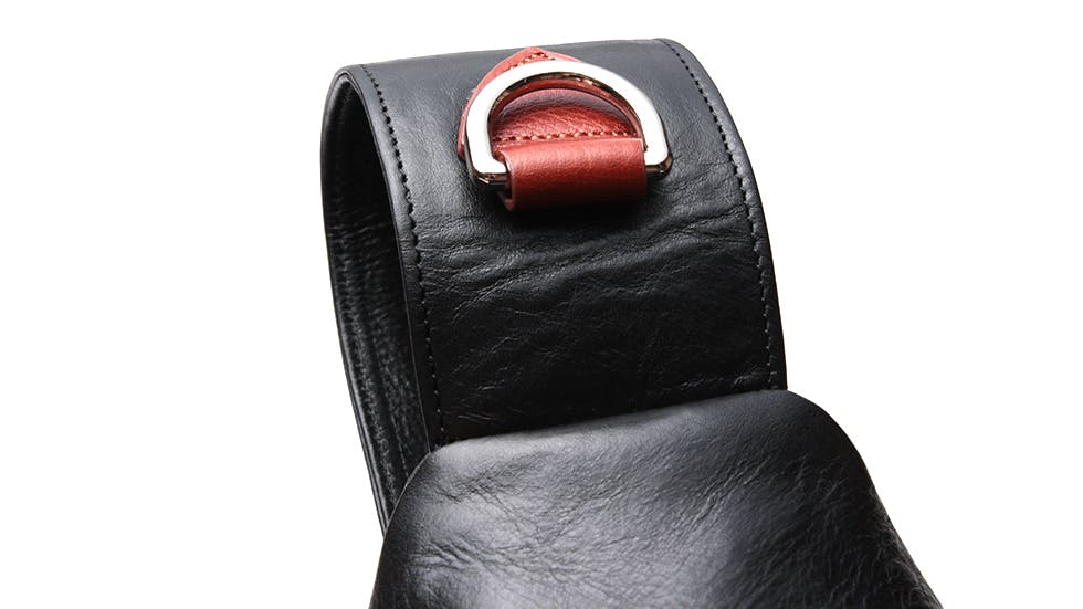 肩ひも上側にダブル リングを採用。斜めがけからワンショルダー(片掛け)に変えてで使用する際に、簡単に肩ひもを短く調整することができます。