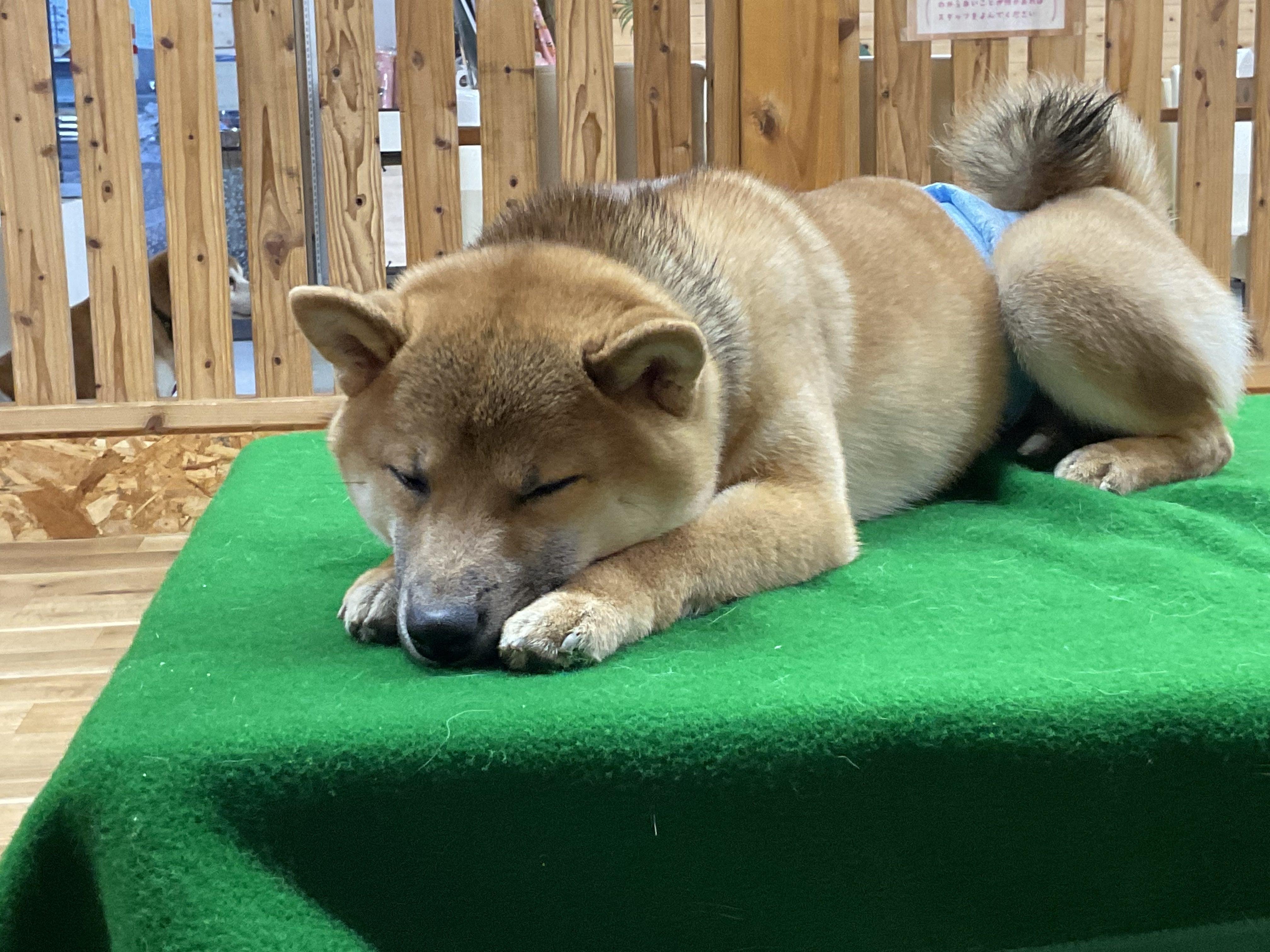 わんちゃんを飼っていらっしゃらない方、飼いたいけど飼えない方、わんちゃん飼うのを検討中の方、今日は連れてきてない方にも楽しんでいただけるように、室内ドッグランスペース、ふれあいルームに元保護犬のふれあいわんちゃんがいます。