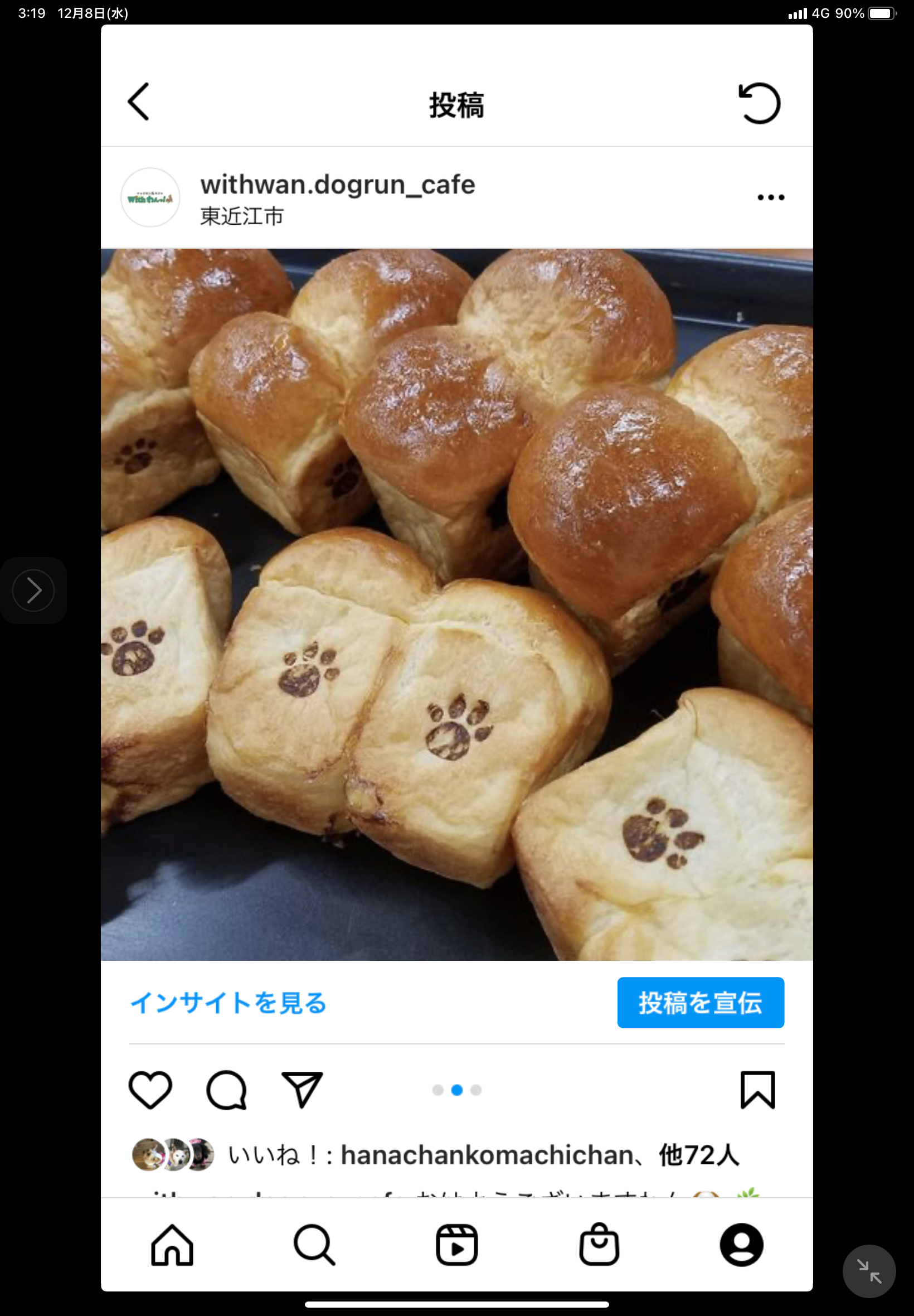手作りのわんちゃんフードやクッキーなど、美味しいと喜んでいただいてます。週末には、わんちゃんにも人にも安心な無添加パンを販売しています。もちろん自家製で、ほんのり甘く、何より添加物のにおいがしないのです!このパンをオーブントースターで焼いていただくと、普段食べている市販の食パンの添加物のにおいが、よくわかっていただけると思います。
