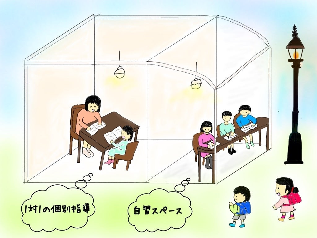 学校の中にはグレーゾーンと呼ばれる子どもたちが多く見られるようになりました。その子の持つ特性が故に集団生活を仲間と同じように送れず不安を抱いている子や学習についていけなくて自信を持てない子など様々です。そういった子どもたちが少しでも胸を張って過ごせるような支援に取り組みたいと思っています。また、様々な理由によって学校に行けない子が少しでも外に出て人と関わることができ、学習を補えるような場所になれたらと考えています。