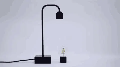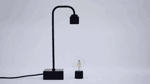 宙に浮いたまま点灯・消灯。大理石の台座にはタッチセンサー式のボタンがあり、電源のONとOFFの切り替えが可能。電源をOFFにするとLED電球は消灯しますが、落下せず宙に浮いたままです。電球が何らかの衝撃を受けてソケットの真下にある定位置からずれると、自動的にソケットに吸着します。