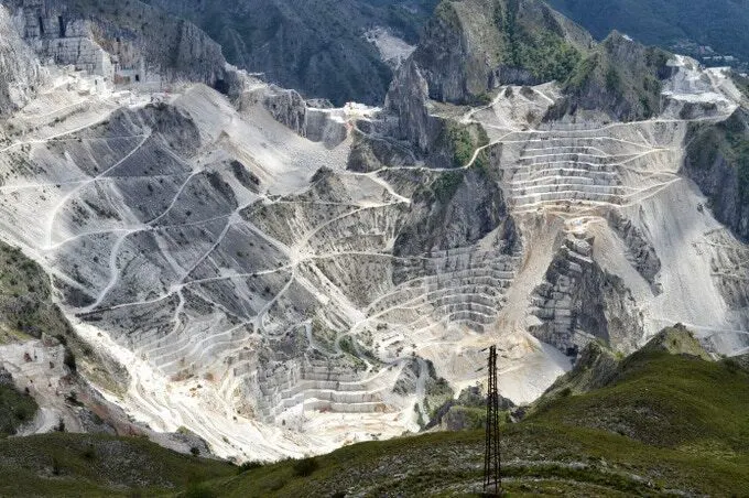 カラーラ大理石は彫刻や建物の装飾に人気のある白や青灰色の大理石の一種。ローマ時代から、イタリアの現代トスカーナ州の最北端、ルニジャーナ州のマッサ県とカッラーラの街のすぐ近くの山で切り出されています。