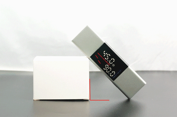 A5:水平を測定する時は平らな場所に置いて、手の震えなどの影響を受けないようにしてください。平らな場所に置いた後、ボタンを押して測量し、安定した後の数値を読み取ってください。専用の台座を併用することで、より幅広いシーンで正確に測定することが可能になります。