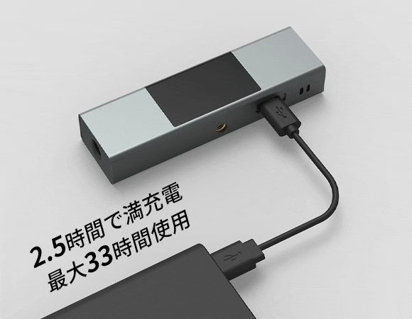 容量730mAhのリチウム電池内蔵で、1回の満充電で最大33時間使用できます。頻繁に充電する必要がなく、大変便利です。