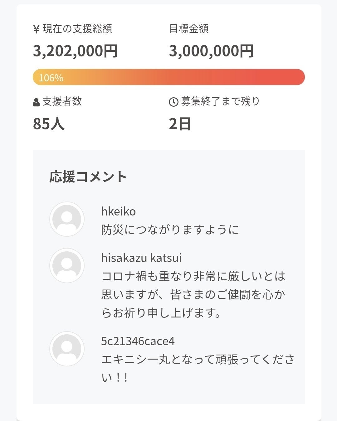 あと2日となりましたが、弊社のプロジェクトを含め3つのプロジェクトも最後まで諦めずに頑張って参ります。