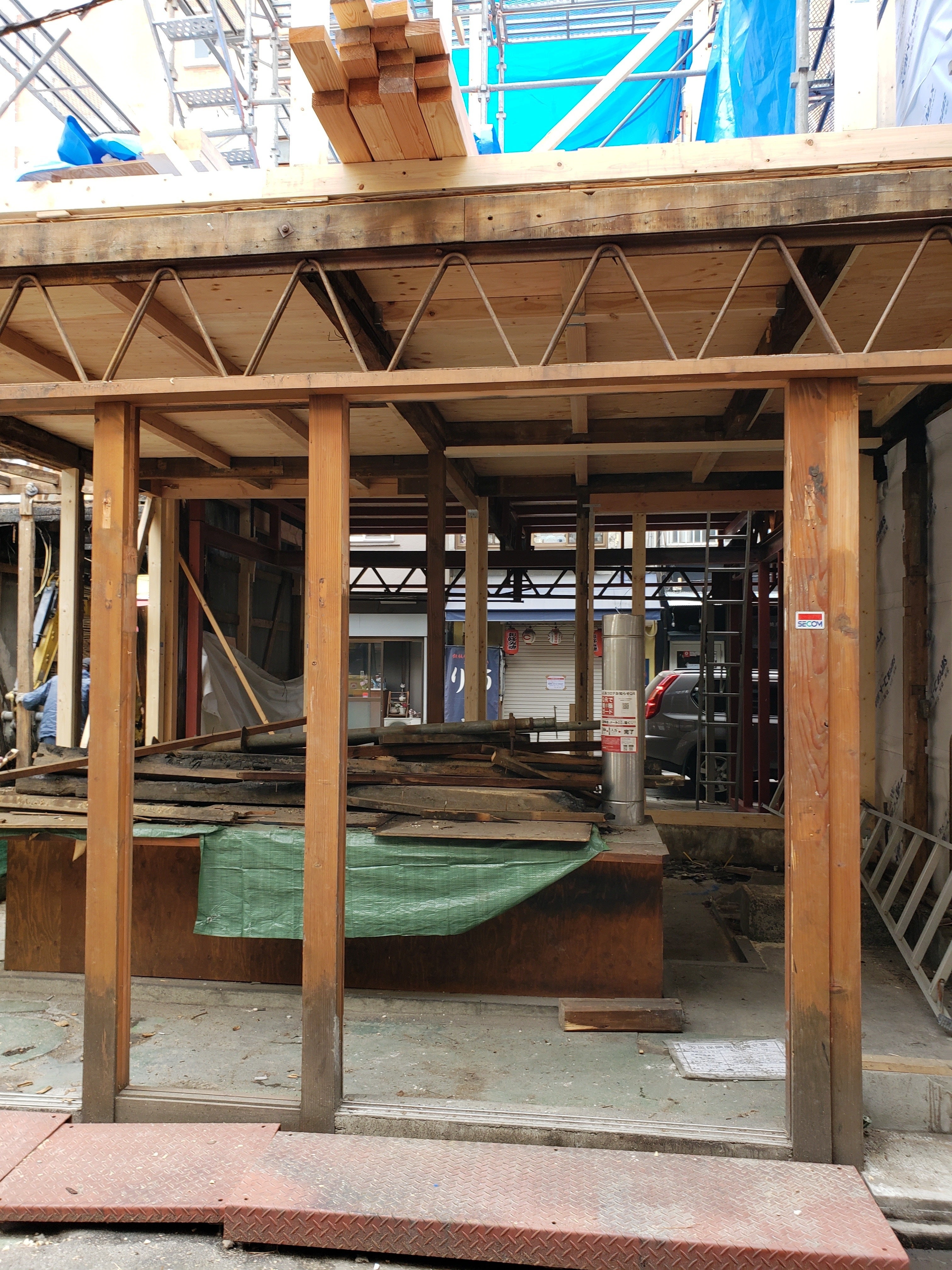 中はすっかり空っぽになておりますが、柱の修復が進んでいます。