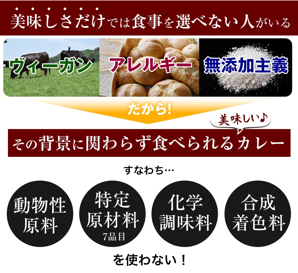 動物性原料ゼロ、特定原材料ゼロ、