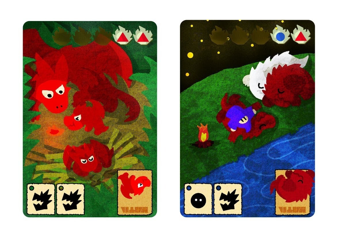 ⚫︎左側のレッドドラゴンの家族が描かれたカードは「ドラゴン団欒」、
