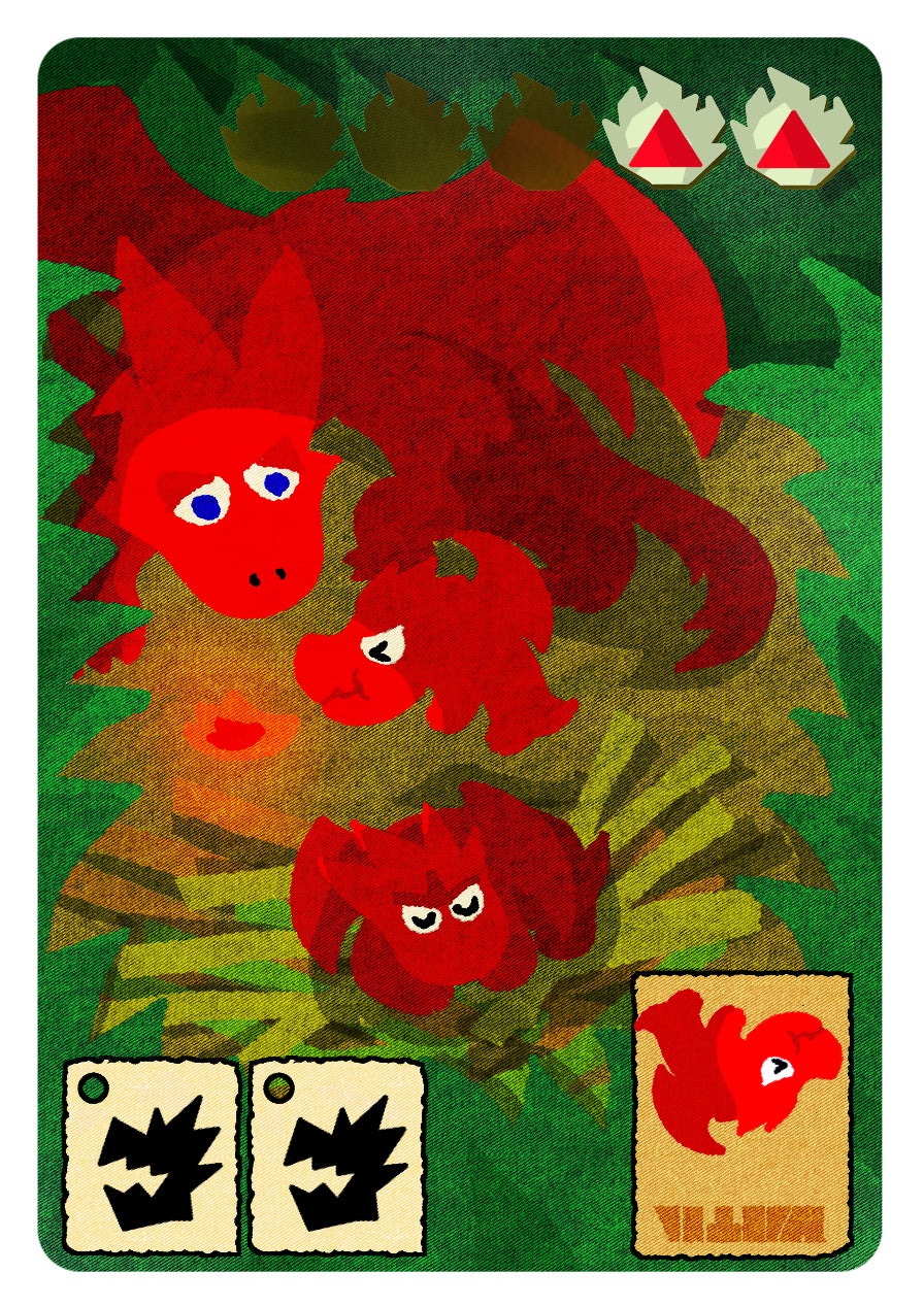 元のイラストより親ドラゴンの目のあたりを変更しています。完成品までにすべてのカードを細かく修正していき、より良い形で皆様にお届けしたいと思います。