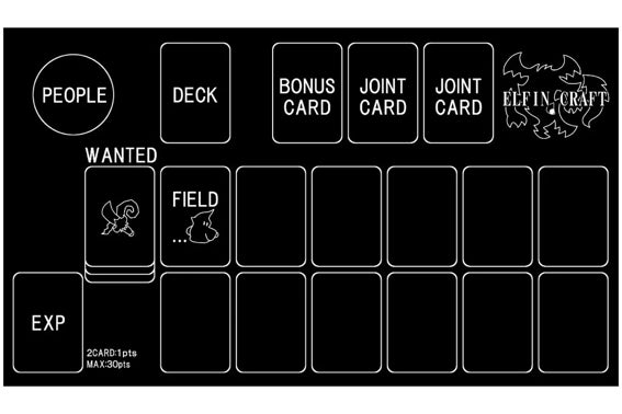 ゲームマットのデザインは細かな点の修正のみで大きな変更はありません。素材はフェルト地を扱っている印刷会社にしようと思っていましたが、コロナの影響か取り扱い停止中のため、ラバー製の素材に変更させていただく可能性が高いです。エルフィンクラフトの雰囲気に合う手触りのよいフェルト製にしようと考えていたので残念です。