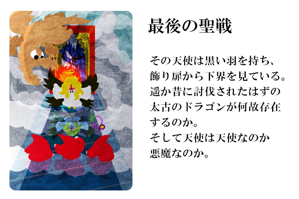 もう1枚の追加カードは「最後の聖戦」です。ストレッチゴールのカードはどれもエルフィンクラフトの世界の謎に触れるようなものが多いのですが、このカードは特にその側面が強いカードです。ゲームの最後の戦いのようなイメージで仕上げています。ゲーム中の効果は現在未定です。トランプのジョーカーのような追加ルールとする効果か他のカードと同じ扱いにするのかで迷っています。せっかくなので特殊な使い方をできるようにしたいのですが、シンプルなルールに余計なものを足すのもいかがなものかとも思っています。どうするか決定次第報告させていただきます。