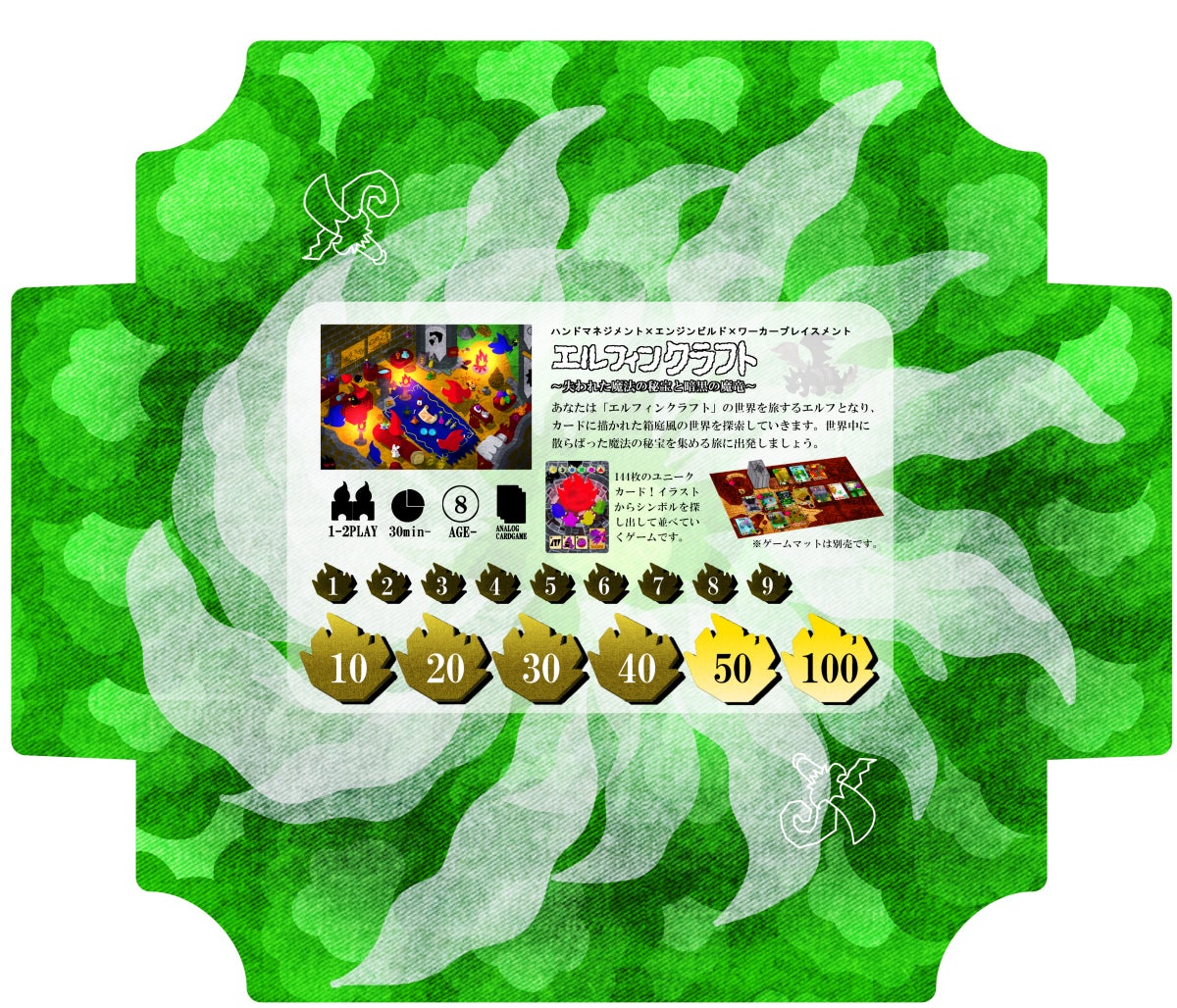 エルフィンクラフトは世界観にこだわって制作しているボードゲームです。目に見えない、ゲーム中には全く関係ない所まで設定することでゲームそのものに深みが出る!と考えてカードフレーバーという形でDX攻略本を制作しております。