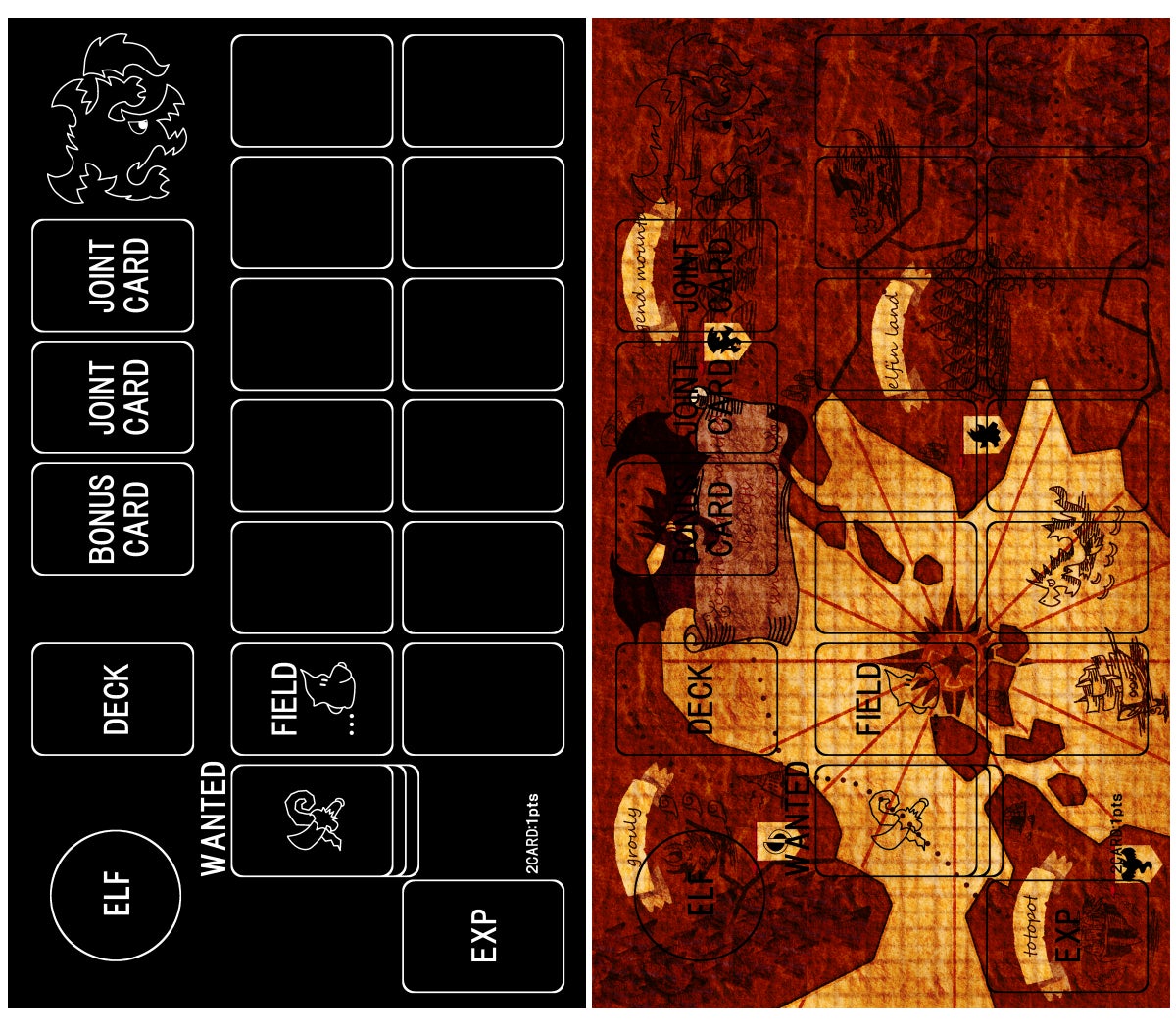 ゲームマットについては当初の予定通りフェルト製にて見積もりしました。フェルト製のため厚みが0.5mmと薄いですが軽くて畳めるので収納性に優れていると思います。イラスト面は微修正のみでデザインは変更しておりません。