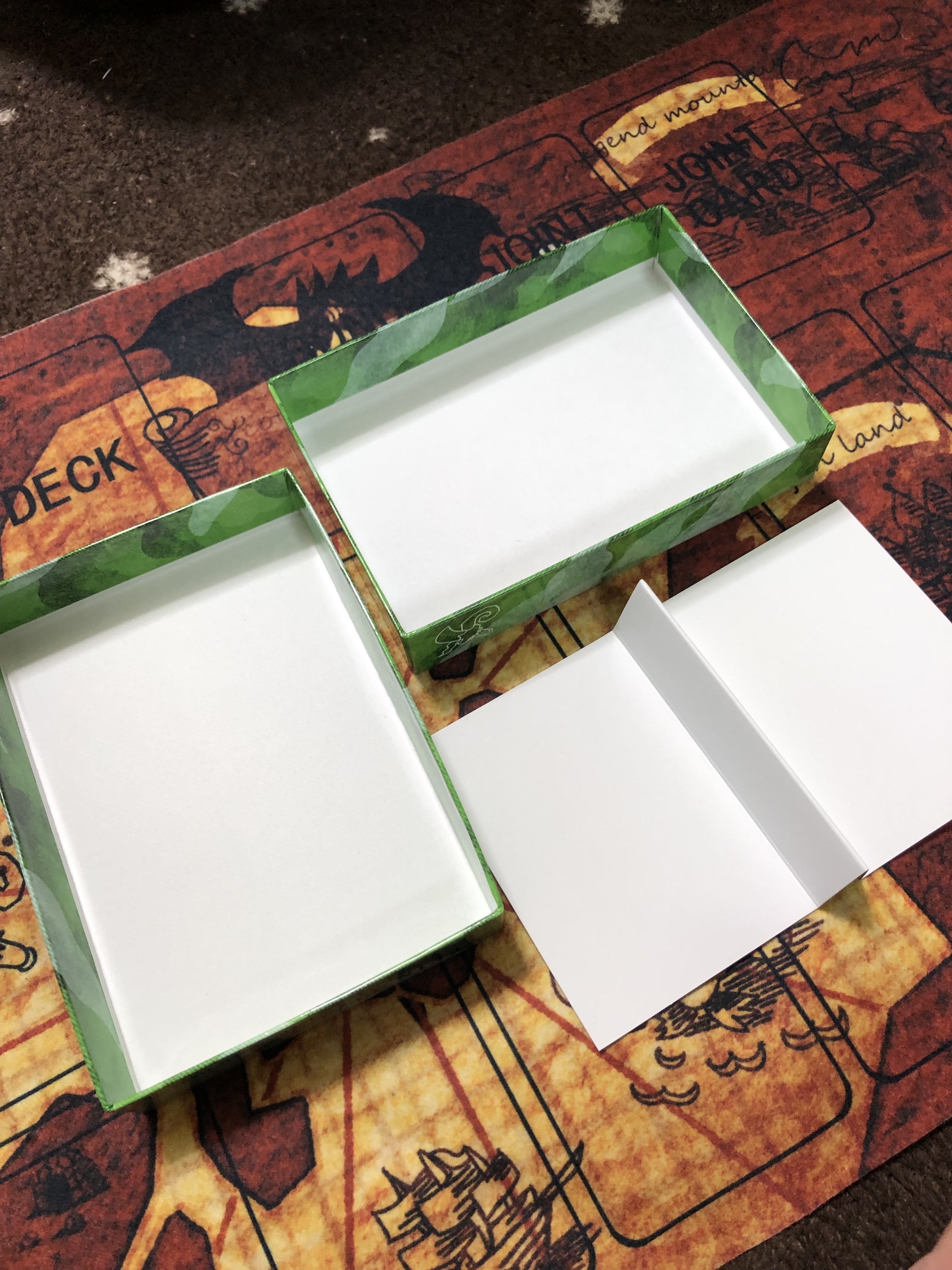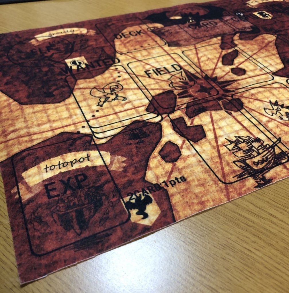 ゲームマットはサンプルとして頼んでいたフェルト製が届きました。印刷や表面のフェルト感はとても良い感じです。