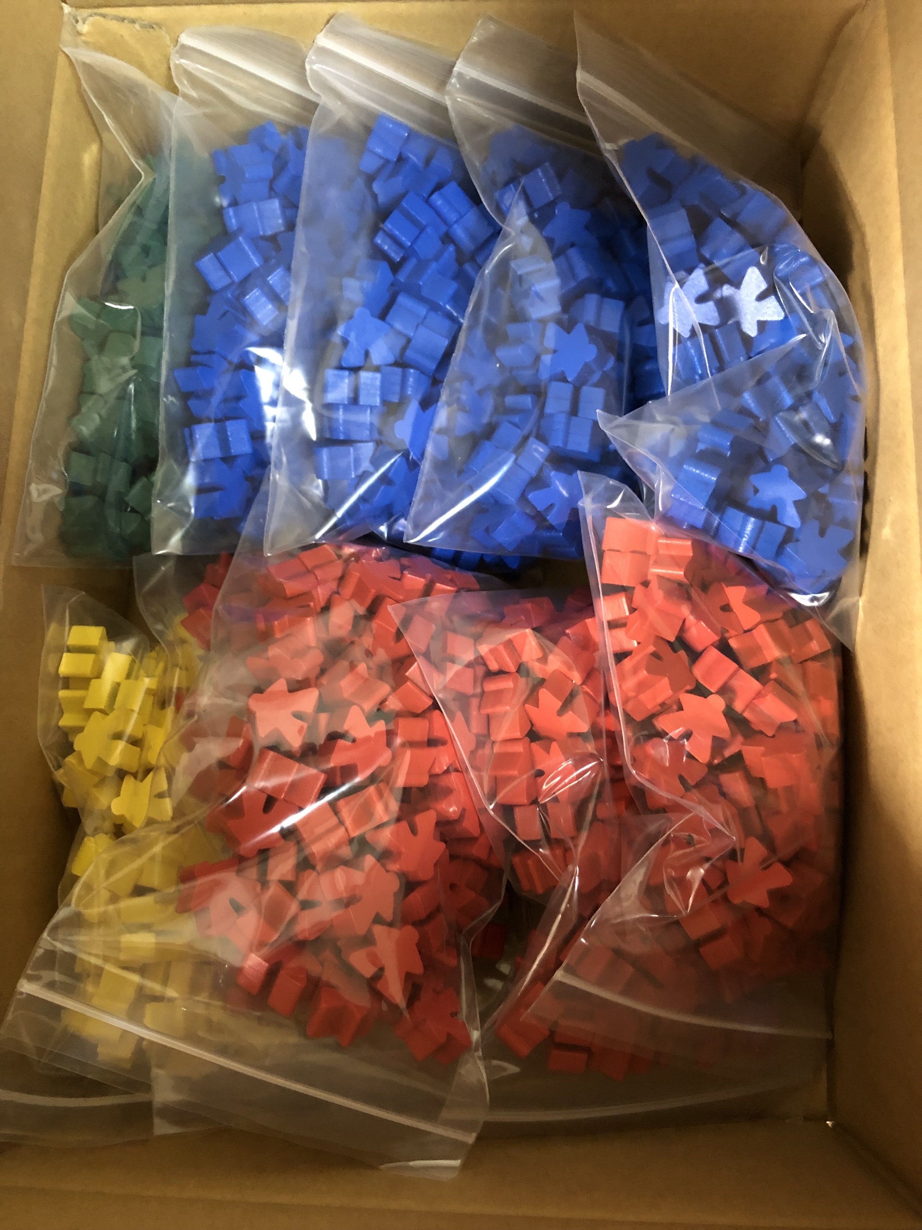 大量のエルフコマが届きました!赤と青のコマはすべての方に3個ずつ付属します。黄色と緑のコマはDXプレミアムゴールドセットとスーパーDXプレミアムゴールドセットをリターンにしていただいた方にそれぞれ3個ずつ付属します。