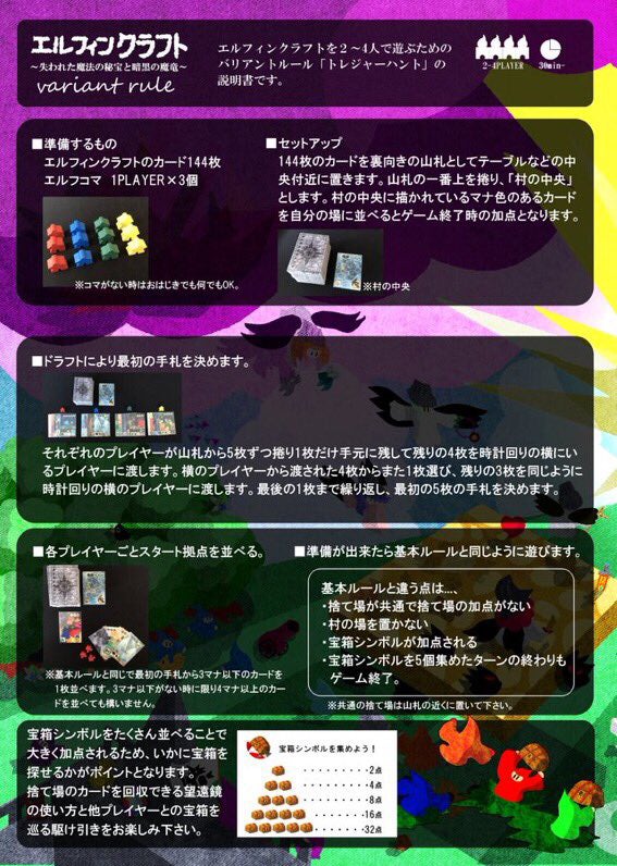 2人〜4人でエルフィンクラフトが遊べるバリアントルールの説明書が完成しました。PDFにて公開中です。