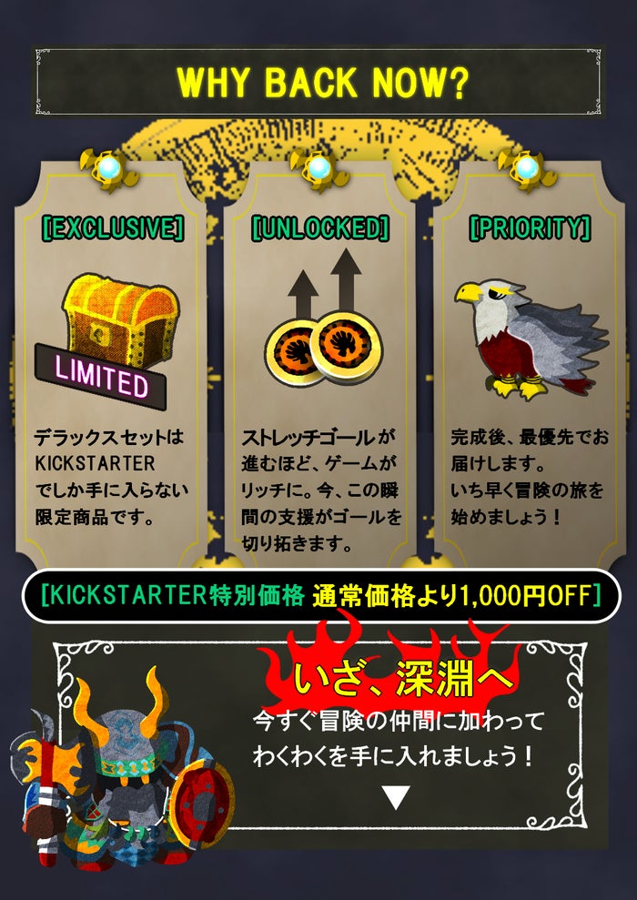 公開後、真っ先に駆けつけてくださる皆様のために、KICKSTARTER特別価格【1,000円OFF】でリワードをご用意しております。