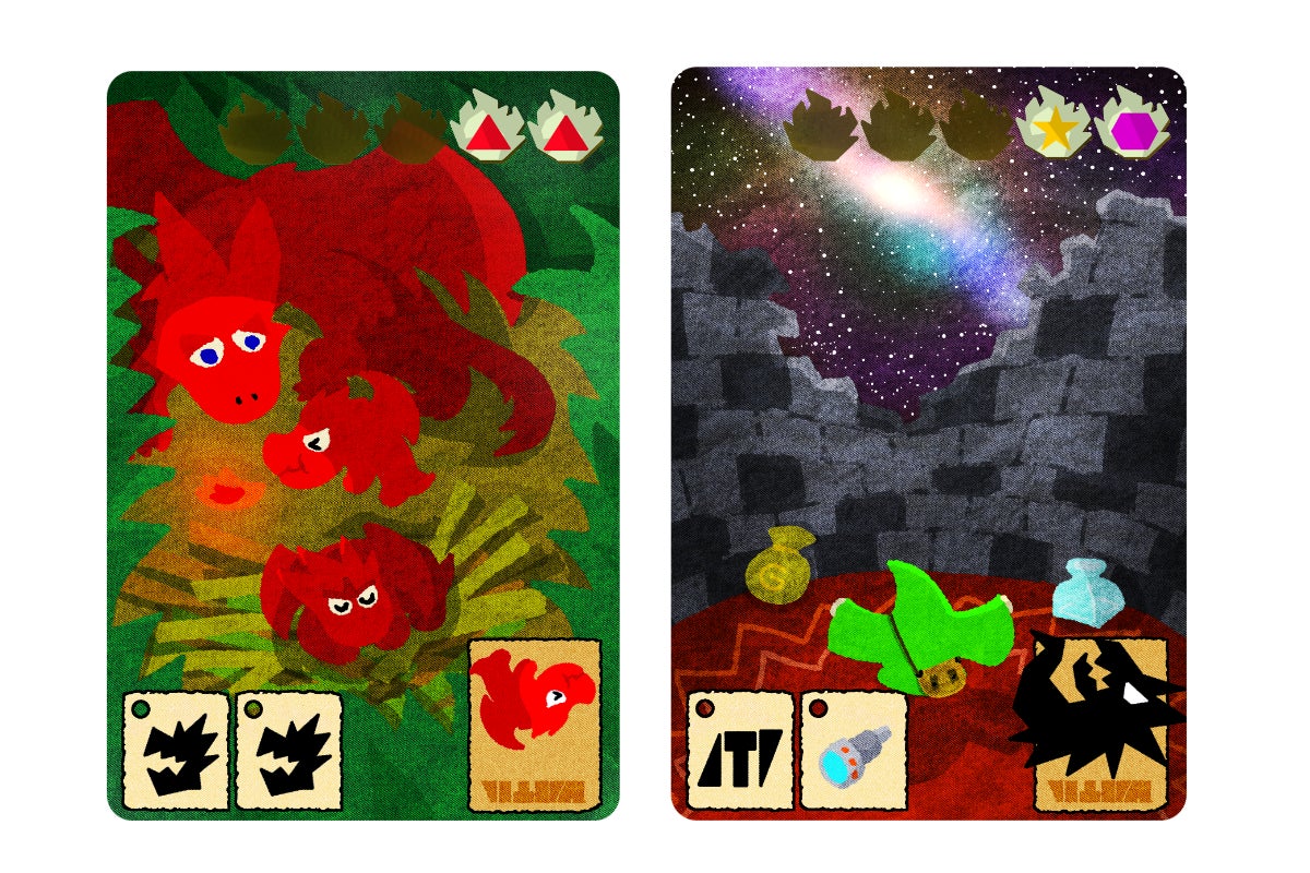 入れ替えカードが決定しました!既存カードからの入れ替えをツイッターにて投票いただいた結果、「ドラゴン団欒」を完成品に同梱することにしました。ご投票いただき、ありがとうございました!ドラゴンがいるカードが2枚あれば、このカードを並べることができます。2マナと強くはなく、ドラゴンカードが2枚ある状況では利用価値は低いかもしれません。しかし、赤ちゃんドラゴンが火を噴く練習をしている一生懸命さに惹かれて、場に並べたいと思うプレイヤーもおられると思います。点数は低いけど、このイラストのカードを場に並べたいという感情を持ってもらえればいいなと思います。元のイラストより親ドラゴンの目のあたりを変更しています。完成品までにすべてのカードを細かく修正していき、より良い形で皆様にお届けしたいと思います。★130%達成のストレッチゴールの追加カード案コメントをいくつかいただき、「流星群」というキーワードが良いかなと思い作ってみました。ちょっと星空がリアルすぎてエルフィンクラフトのイメージとは違うかなと思っているのですがいかがでしょうか。別案も色々考えていますのでコメントなどお願いします。現在、目標達成率122%まで来ております。引き続き、ご支援、応援のご協力をいただき、130%の追加カードを解放させて下さい。よろしくお願いします!