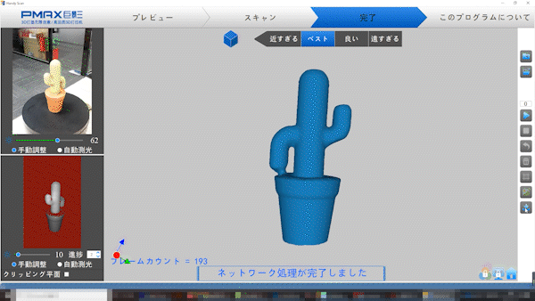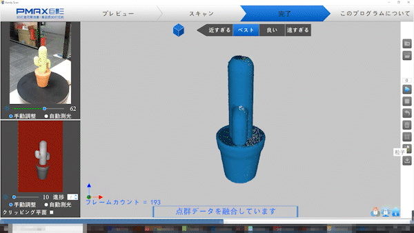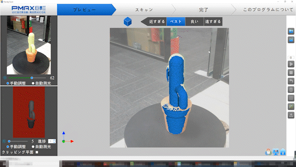 従来のソフトの中には複雑なソフトを使っているため、特別な技能や知識が必要と、どのように使うかを学ぶ時間が必要です。これも3Dスキャナーが普及していなかった理由の1つです。「Sense Pro Max」は非常にシンプルなソフトを使っているので、初心者でもわかりやすく使うことができます。スキャンの進みと結果は常に見ることができ、スキャン中に何か問題があれば、一時停止、削除、または修復することができます。