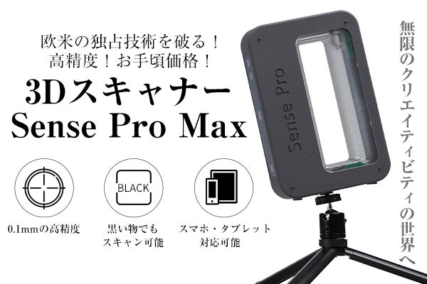 「Sense Pro Max」は、世界中で3Dスキャナーや3Dプリンターを販売しているPMAX社が開発した高性能3Dスキャナーです。IT業の発展を導いているアメリカでは、3Dスキャナーは日常的に利用され、様々な物をスキャンしてデータ保存や物作りをしています。しかし、独占技術の原因で、アジアの市場に登場した3Dスキャナーは「高精度のスキャナーの値段が高すぎる」、「安価の3Dスキャナーの精度は基準に達していない」という現状があります。私達は「欧米の独占技術を破り、アジアにも普及できる精度が高くて手頃の価格の3Dスキャナーができたら」との思いを込めて、この商品を開発致しました。