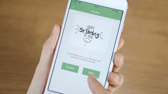 「LASERCUBE 100」はプレビュー機能を搭載することより、アプリを通して刻印位置の表示を実現!彫刻範囲や位置を確認しながら調整できます。 変更などがある場合は、リセットすればOKです 。