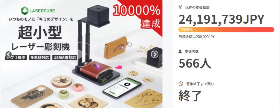 2022/11/11 20:00【LASERCUBE100】を楽しみに待ってくださっている皆様大変お待たせいたしました!この度、【LASERCUBE100 】先行予約販売の開始日が決定いたしました!7日後の【11月18日(金)17時】より、CAMPFIREにて予約販売を開始いたします。今すぐ詳細をチェック!https://camp-fire.jp/projects/view/630193リターンの割引率は初日限定最大28%OFF!数量限定で、早めの売り切れが予想されますので、公開直後にすぐゲットしてください!それでは、公開までもうしばらくお待ちくださいませ!引き続きどうぞよろしくお願いいたします。Polaris Trade【LASERCUBE100】プロジェクト 運営チーム もっと見る【ご報告】出荷完了いたしました