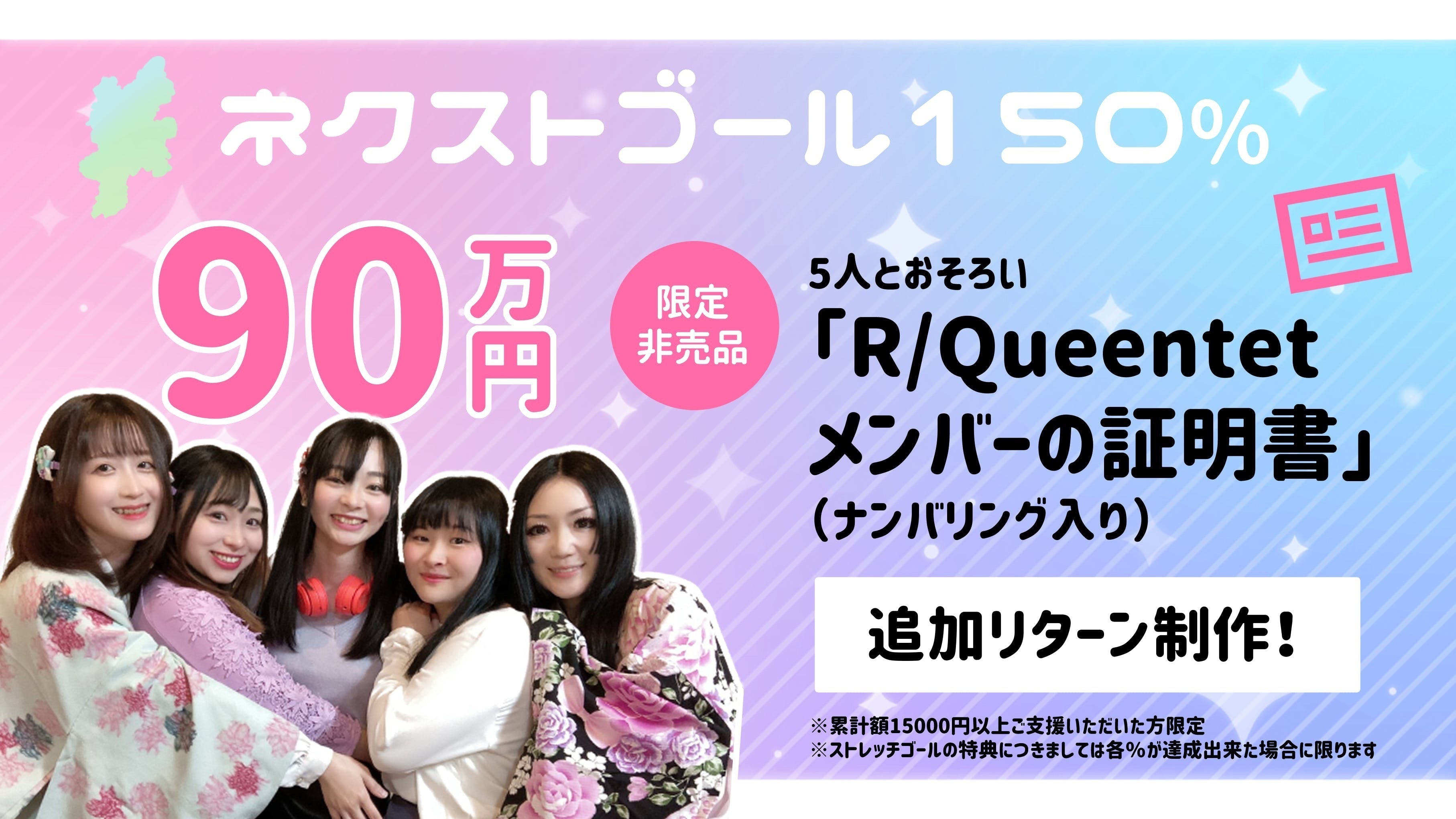 2022/07/04 20:00いつもR/Queentetを応援してくださりありがとうございます(⁎ᴗ͈ˬᴗ͈⁎)2021年のクリスマスイブから始まったこのクラウドファンディングプロジェクトは、皆様の応援のおかげで無事目標を達成することができました!プロジェクトのリターン品もすべてご支援者の皆様へ発送し、お手元にお届けいたしました。たくさんのご感想や到着報告、メンバー一同とてもうれしく拝見させていただいております。リターン全完了をもちまして、こちらのクラウドファンディングプロジェクトは正式に完了となりました!皆様に感謝申し上げます!感謝感激五重奏!!プロジェクトの振り返りとして、メンバーからのコメントをまとめましたので、ご覧くださいませ。Lisapyon♡この度はR/Queentetプロジェクトへのご支援、本当にありがとうございました。皆様からの応援があったからこそ、メンバーひとりひとり、そしてプロジェクトとしての夢を実現することができました!約半年をこのメンバーと、皆様と駆け抜けてきて、私自身は新たにたくさん学ぶことがありました。個性的なメンバーが色々なジャンルから集まったからこそ、このようなCDを制作して、皆様に参加して頂けて、プロジェクトが成功したのだと思います。私は今まで様々な活動をしてきましたが、また新たな経験をしたり、この半年間は忙しくもとても刺激的で、充実した日々を過ごしました。全ては大好きなメンバーとこのプロジェクトに参加してくださった皆様のおかげです。メンバーにも皆様にも感謝の気持ちでいっぱいです!関わって下さった皆様に…改めて、ありがとうございました!そして、お疲れ様でした。この先もメンバーひとりひとり、大好きな信州を盛り上げていけるように全力前進していきますので、応援して頂けるとありがたいです。『信州五重奏』たくさん聴いてくださいね♪登久姫皆様ごきげんよう♪昨年12月より始まったこのクラウドファンディングじゃが、皆様のおかげにて無事達成、そして最後まで走りきることが出来ました!!ご支援頂いた皆様、応援して下さった皆様、誠にありがとうござります☆長かったようで短くも感じ、様々なことがあった半年間…沢山の皆様と共に夢を叶えることができました(⁎ᴗ͈ˬᴗ͈⁎)このプロジェクトは終幕致しますが、これからも夢を叶えるべく様々な活動に挑戦して参りますヾ(´︶`♡)ノ ♬信州を盛り上げるため活動して参りますゆえ、これからも宜しゅうに(๑•̀ᴗ-)✩このプロジェクトに関わって下さった全ての方に感謝申し上げます。本当にありがとうござりました♡登久姫高坂梓改めまして、クラウドファンディングプロジェクトを応援してくださった皆様、本当にありがとうございました!長野県で歌の活動を一度もやったことがない身でありながら、いきなりクラファンのご協力をお願いすることに最初は後ろめたさと申し訳なさがありました。皆様が歌を楽しみですと言ってくださったり、配信やSNSでも盛り上げてくださったりといったたくさんの応援のおかげで、ここまで来ることができたと思っています!歌スキルは一番未熟ですが、信州愛はいつもメラメラ燃やして生きているのでもう気合でした!信州愛爆発できてたかな? 今回制作したソロ曲もユニット曲もすごく愛着があって、何かしら理由をこじつけてでも歌いたいです(笑)歌の楽しさ自体を知ってしまったのでこれからも何かやりたいな…!乞うご期待ください!作業のために何度か徹夜したりして大変でしたが(笑)、このプロジェクトでないと得られない経験がたくさんたくさんありました。ここで皆様から学んだこと、得られたことをこれからの活動に生かして、もっとより良いエンターテインメントを皆様にお届けしていきたいなと考えています。メンバーはこれからもいろいろなジャンルで信州を盛り上げるためにも活動してまいります。プロジェクトに関わってくださった全ての皆様へ重ね重ね感謝申し上げます!今後ともどうぞよろしくお願いいたします!平賀みらい改めまして、この度はR/Queentetをご支援していただきまして、ありがとうごさいました。プロジェクト始動から、約半年間、メンバーの5人、そして、ご支援いただいた全ての方々と共に、今日を迎えることが出来ました。初めての経験もたくさんあり、ワクワクとドキドキの毎日でした。私個人といたしましては、初めての自分のオリジナル曲を出したりと、緊張する場面も多々あったのですが、ご支援いただいたみなさま、そしてメンバーの5人とともにステージに立った時は本当に楽しくて、心の底から感謝で溢れました。R/Queentetのメンバーはそれぞれ様々な分野でこれからも活動していきますので、みなさま、これからもどうぞ応援よろしくお願いいたします!ありがとうございました!歌羽改めまして、R/Queentetプロジェクトクラウドファンディング無事終了となりました。ありがとうございました!!準備期間から含めると約半年間ホントに多くの方々に