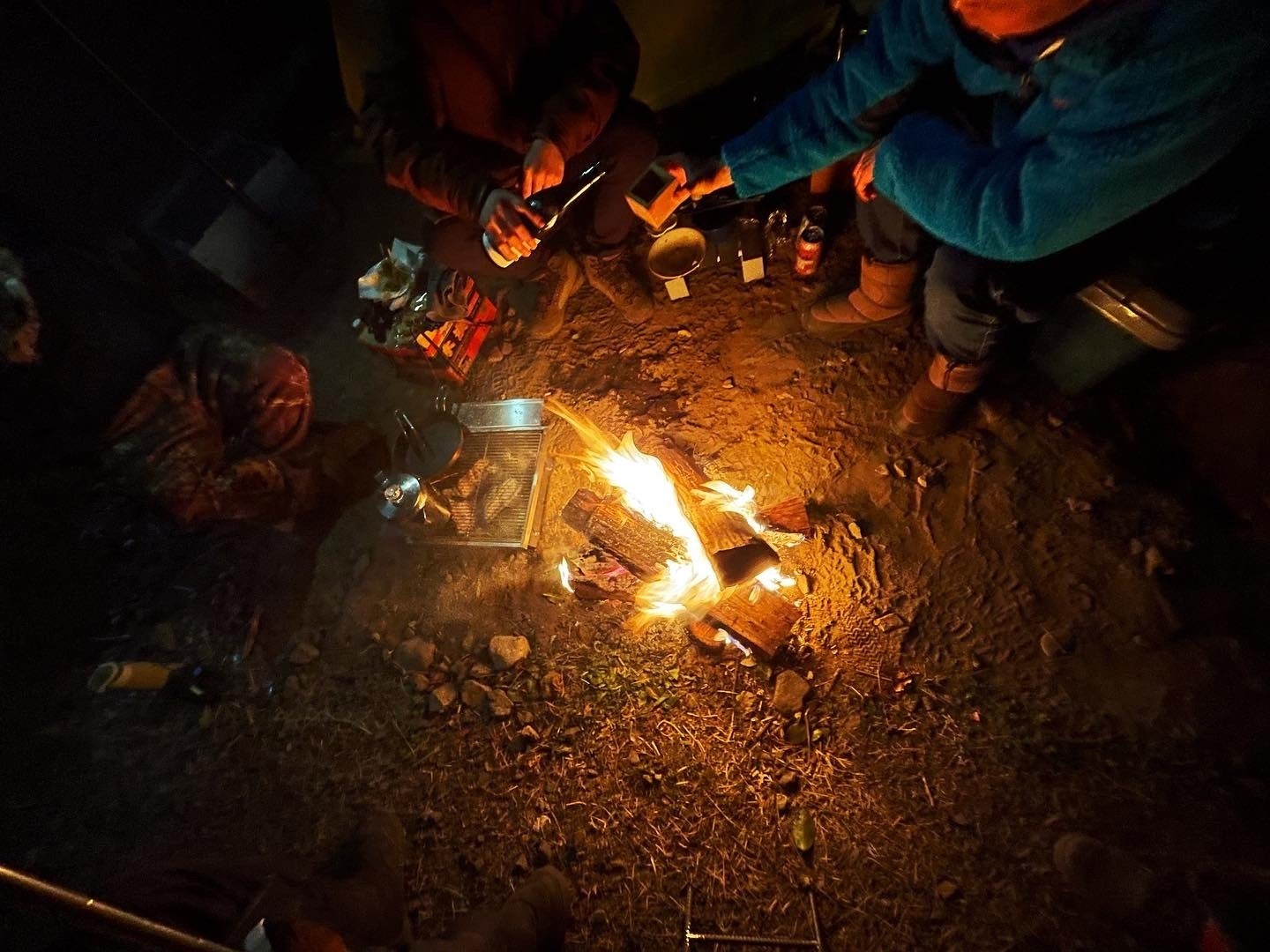未完成のサイトで火を囲む夜