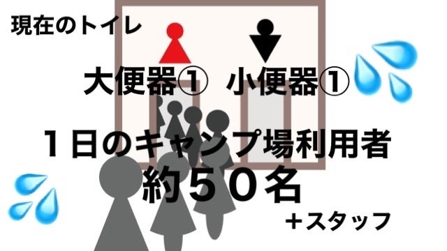 去年は、急遽仮設トイレを置くなどして対応していましたが、サイトの近くに設置した為、異臭問題や衛生管理の難しさから、早々に撤去しました。