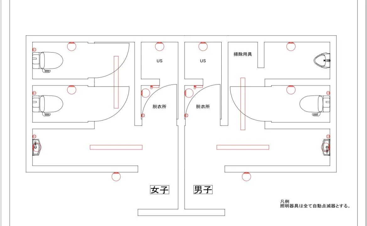 ・男女各1機づつ設置