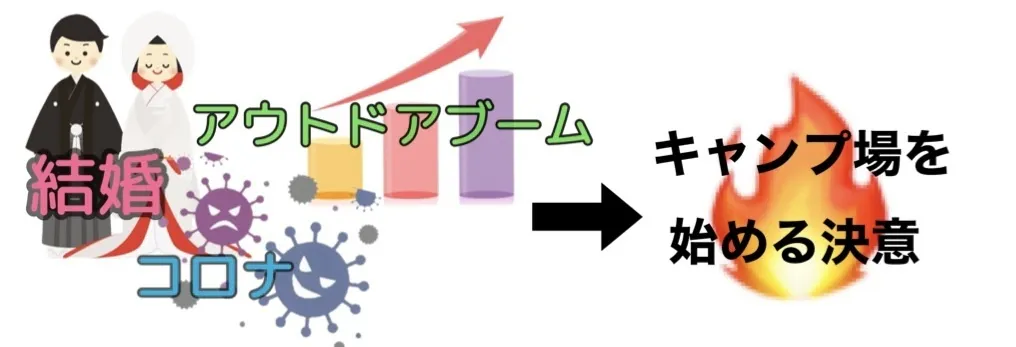 2020年 時を同じくしてこの頃、コロナがやってきます。「お金はないけど時間は余るほどある」そして、じわじわとアウトドアブーム市場も盛り上がってきている、今がチャンスだ!と思い、夢だったキャンプ場を夫婦で始めることに決めました。