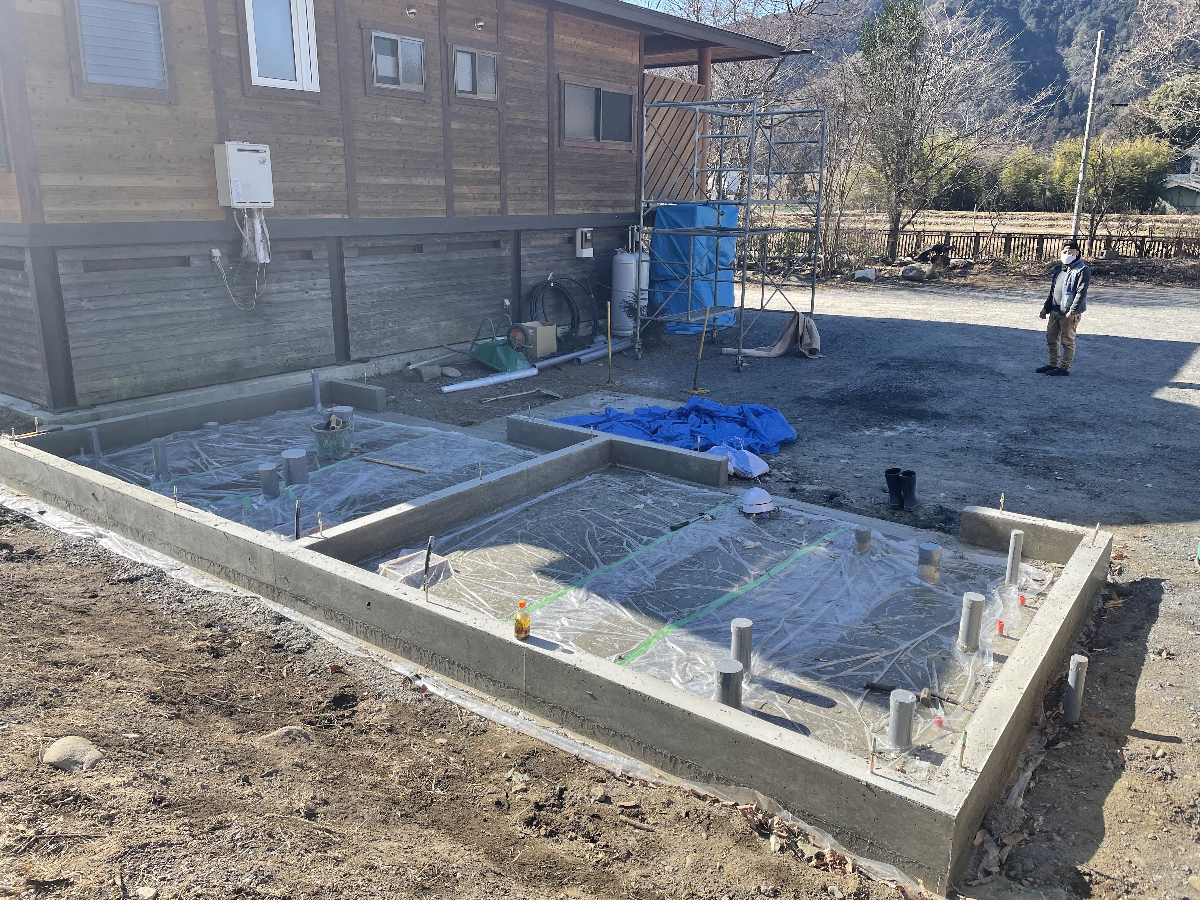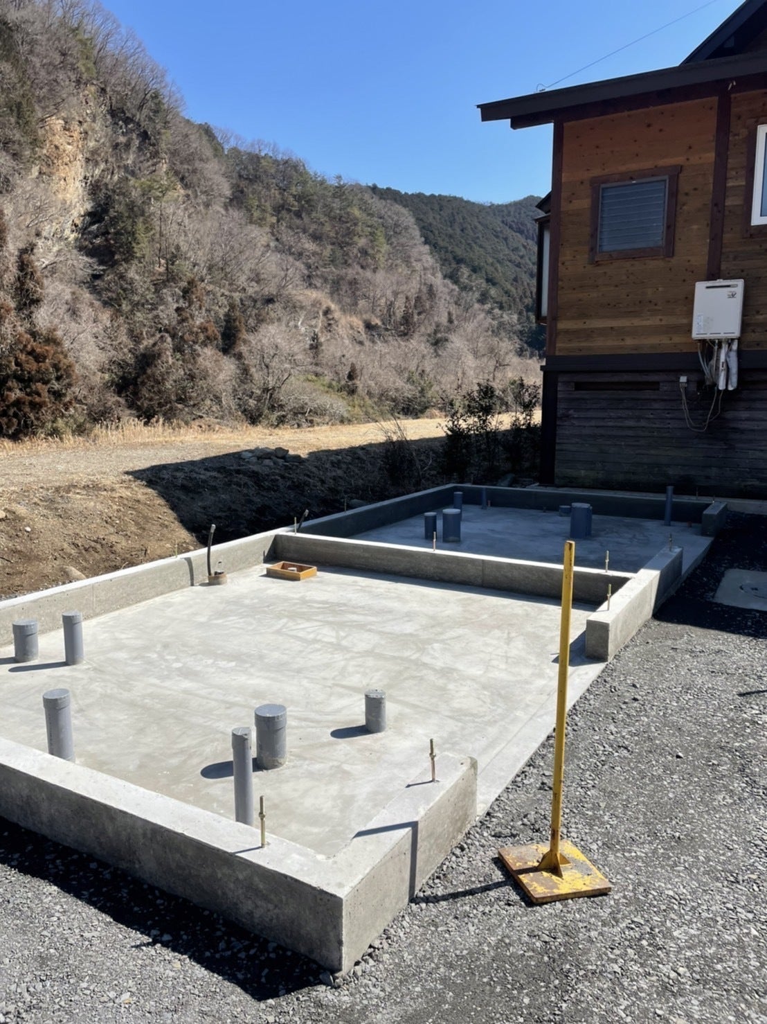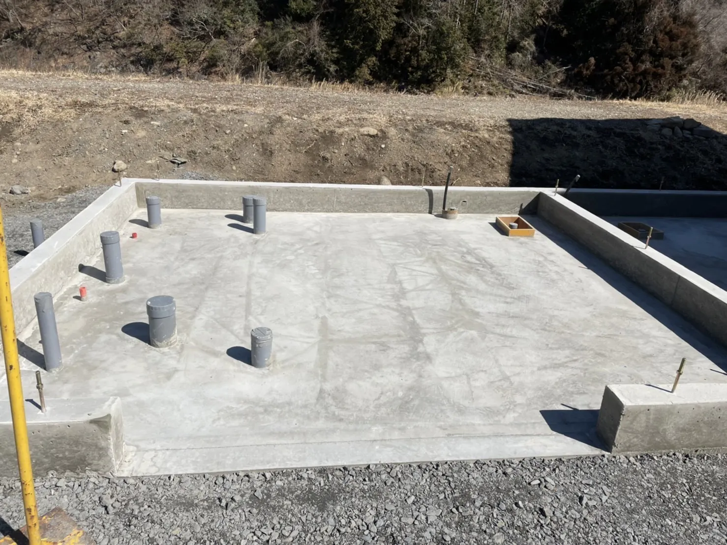 コンクリを流し込み、固め、基礎が出来上がりました!!!